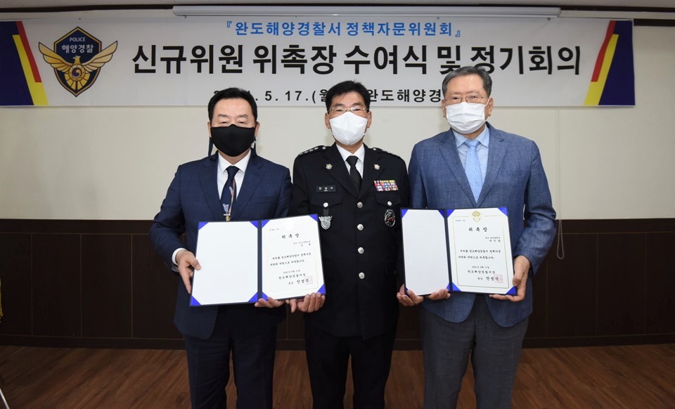 완도해양경찰서(서장 안성식)는 17일 3층 영상회의실에서 정부혁신 실현을위해 정책자문위원회 신규위원 위촉식과 정기회의를 가졌다고 밝혔다.