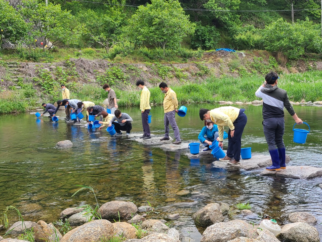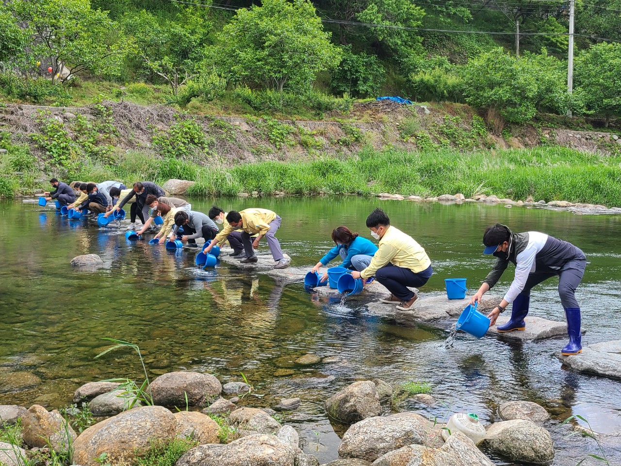 진상면은 수어천댐 상류인 황죽리 (백학동 권역 인근 징검다리 펜션) 주변하천에 백학동권역 운영 위원장(김재철)과 옥곡 장례식장 대표(서영배). 해륙뉴스1 대표(유경열)와 함께 광양시 철강항만과 과장(장민석) 및 진상 면장(김미란)등 시청 직원과 진상면 직원들과 함께 방류 행사를 하였다.