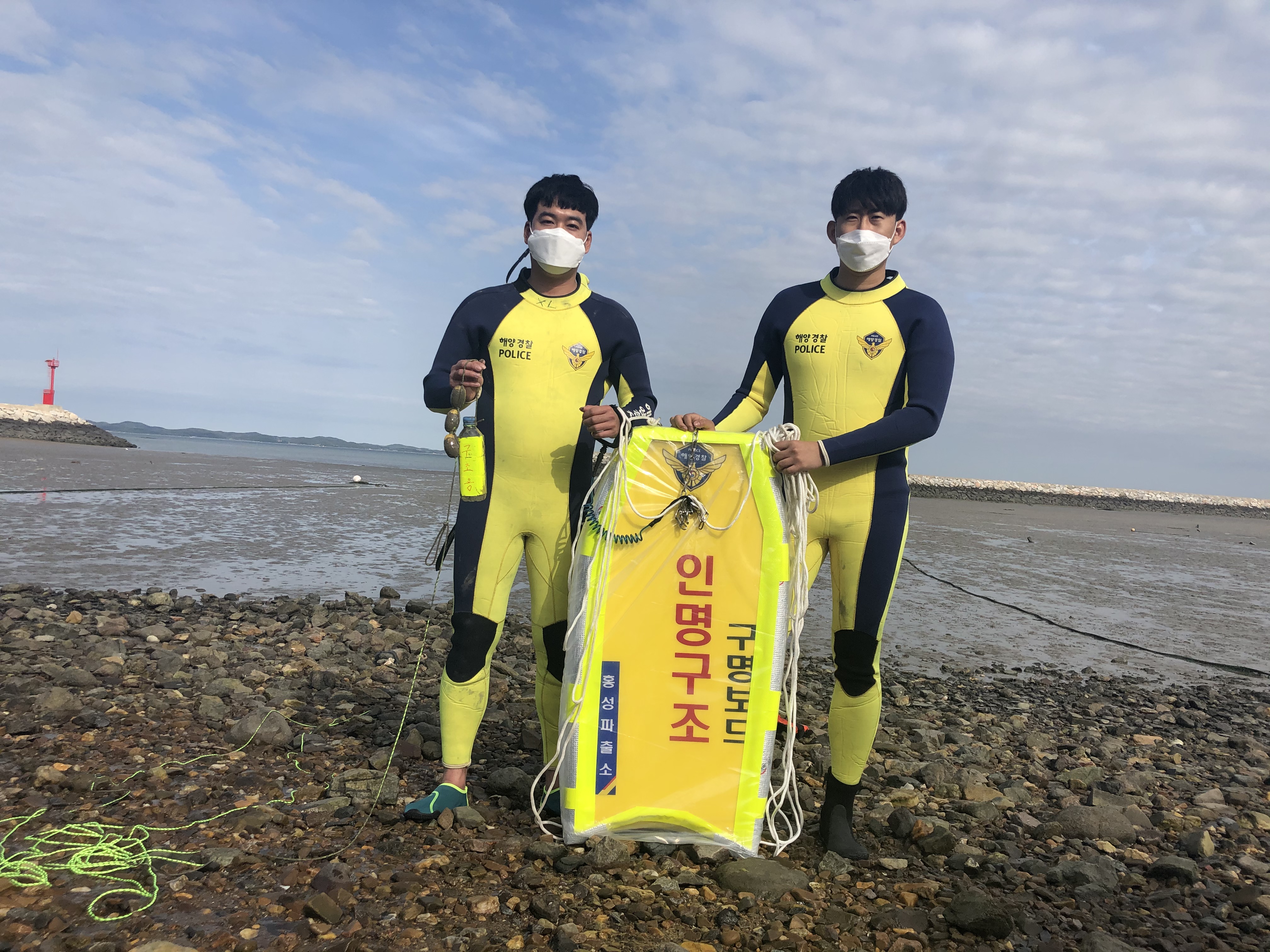 먼저 홍원파출소에 근무중인 김택규 경장이 갯벌 고립자 구조에 필요한 신속한 접근과 안전성 확보를 위하여 갯벌 빠짐을 예방할 수 있는 갯벌신발을 제작하여 구조작업에 활용 중이다.