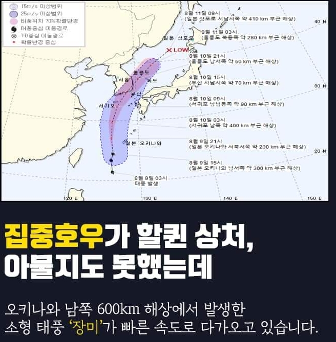 태풍 장미는 경상도와 제주도, 전남 남해안을 중심으로