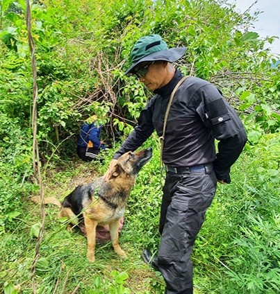 23일 12시경 순천소방서 산악구조대 인명구조견(용맹)이 야산 중턱에서 숨진 상태의 실종자 A씨(50대 추정)를 발견했다.