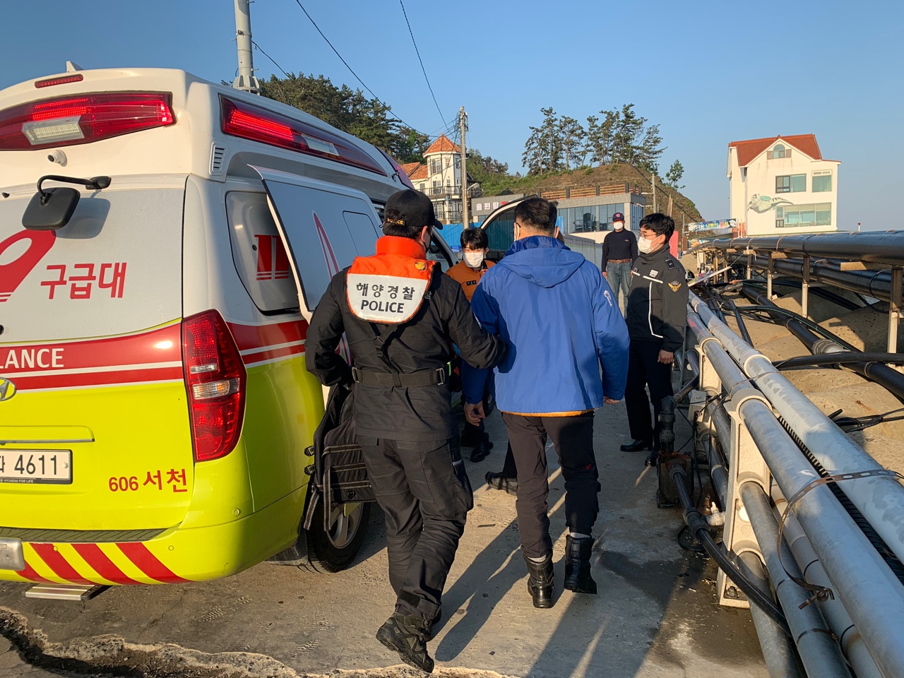 종합상황실은 홍원파출소 연안구조정을 현장에 급파해 신고접수 40분만에 환자를 홍원항으로 안전하게 이송하여 119구조대에 인계하였다. A씨는 생명에는 지장이 없었으며 서천소재 병원으로 이송했다.