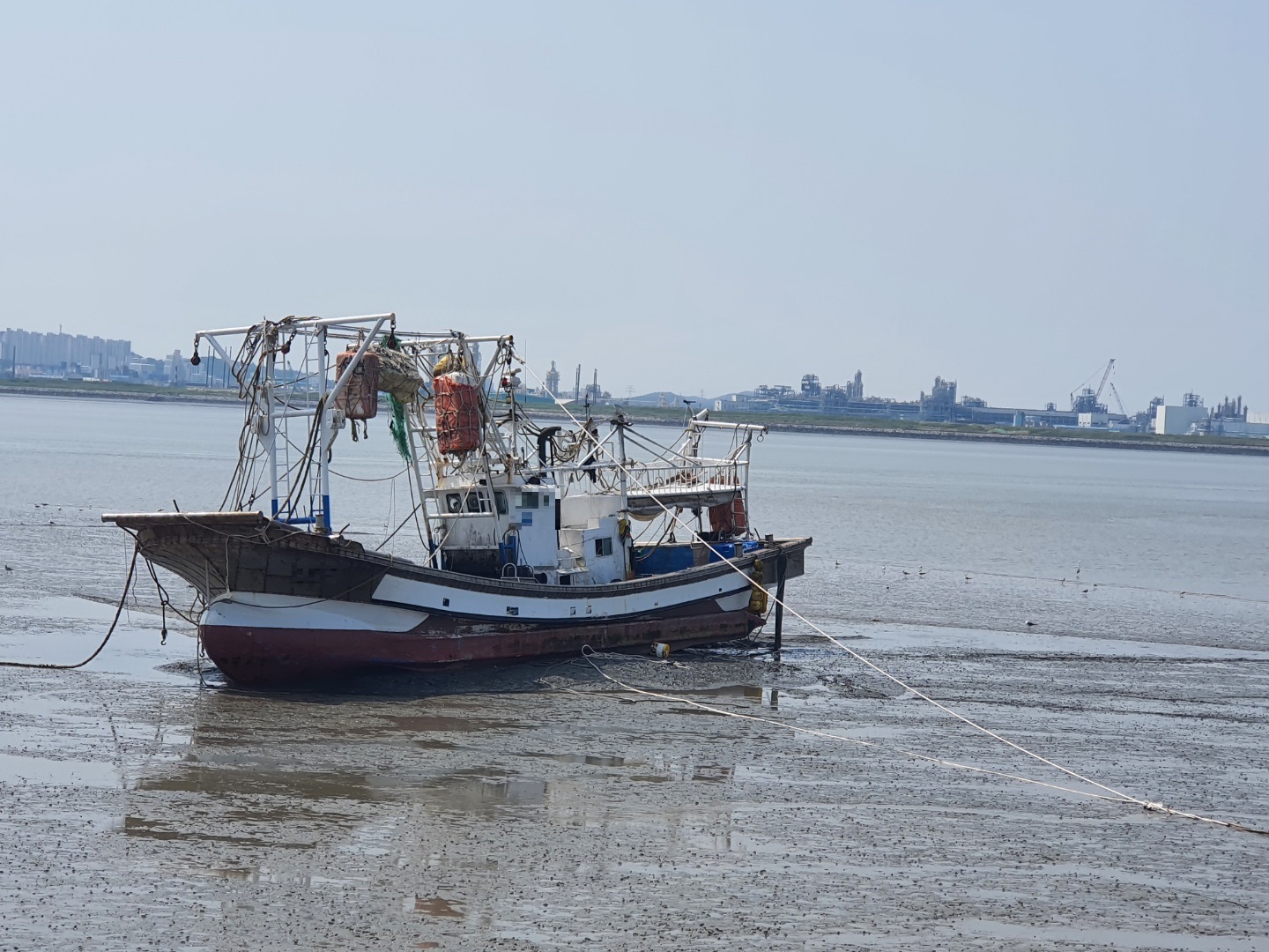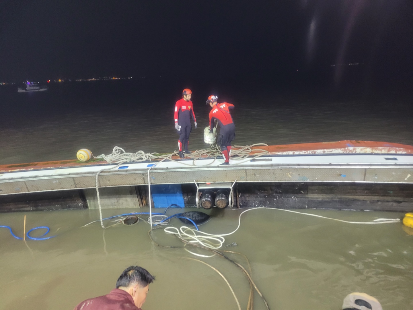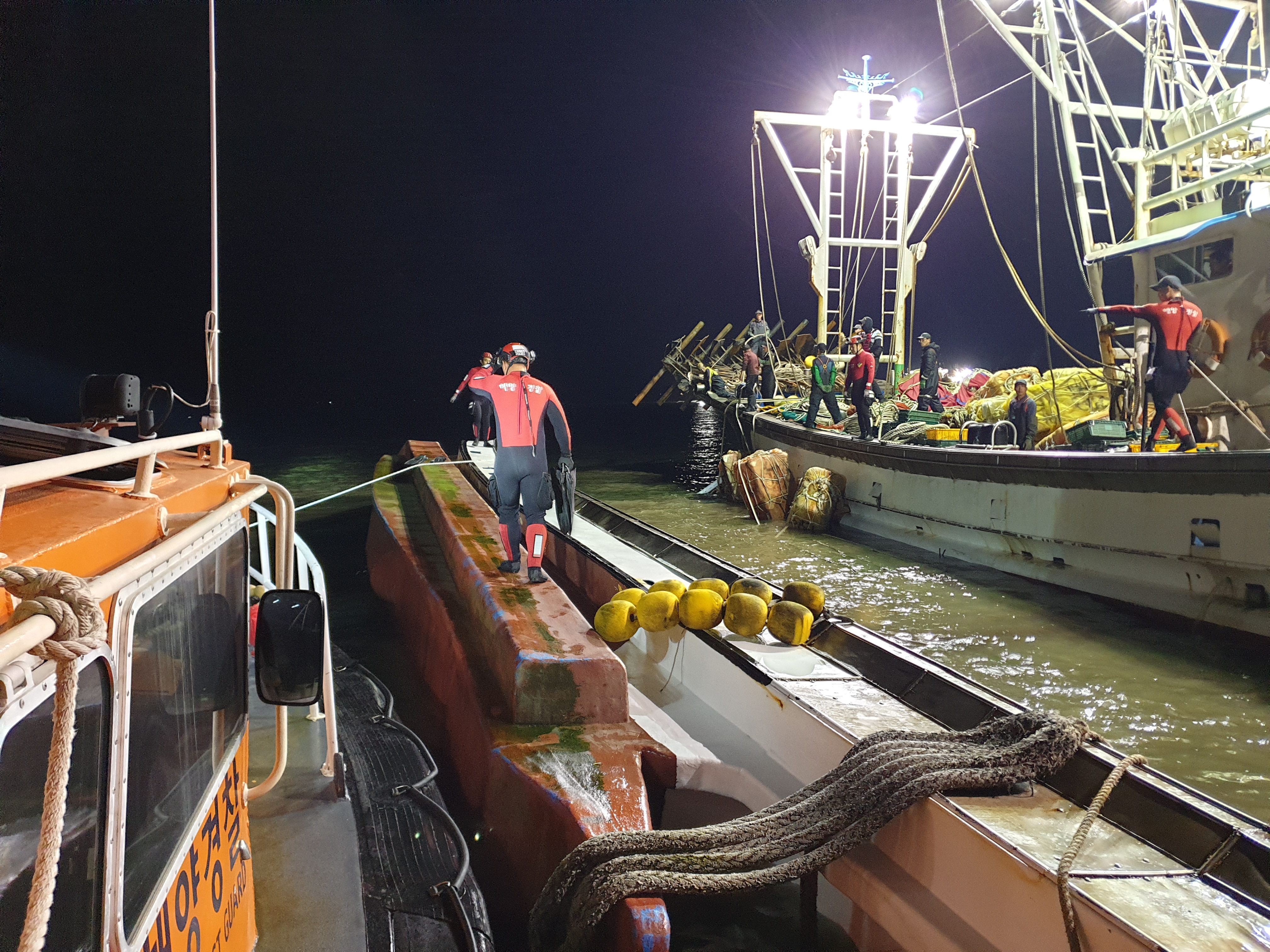 한편 사고 선박은 물이 차오르는 밀물에 맞춰 오늘 오전 10시 30분경 민간구조선의 도움으로 안전지대(갯벌)로 이동해 크레인 등 중장비으로 복원이 되어 배수작업이 펼쳐졌다.