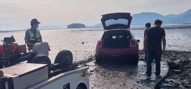 완도해경에 따르면 29일 밤 11시경 해남군 남창 인근에서 차량이 뻘에 들어가 사람은 빠져 나왔으나 차량은 고립되어 있다는 A씨(남, 55세)의 신고가 접수되어 해경파출소 순찰차를 현장에 급파, 운전자의 안전상태 이상없음을 확인 후 고립 차량을 안전지대로 이동시켰다.