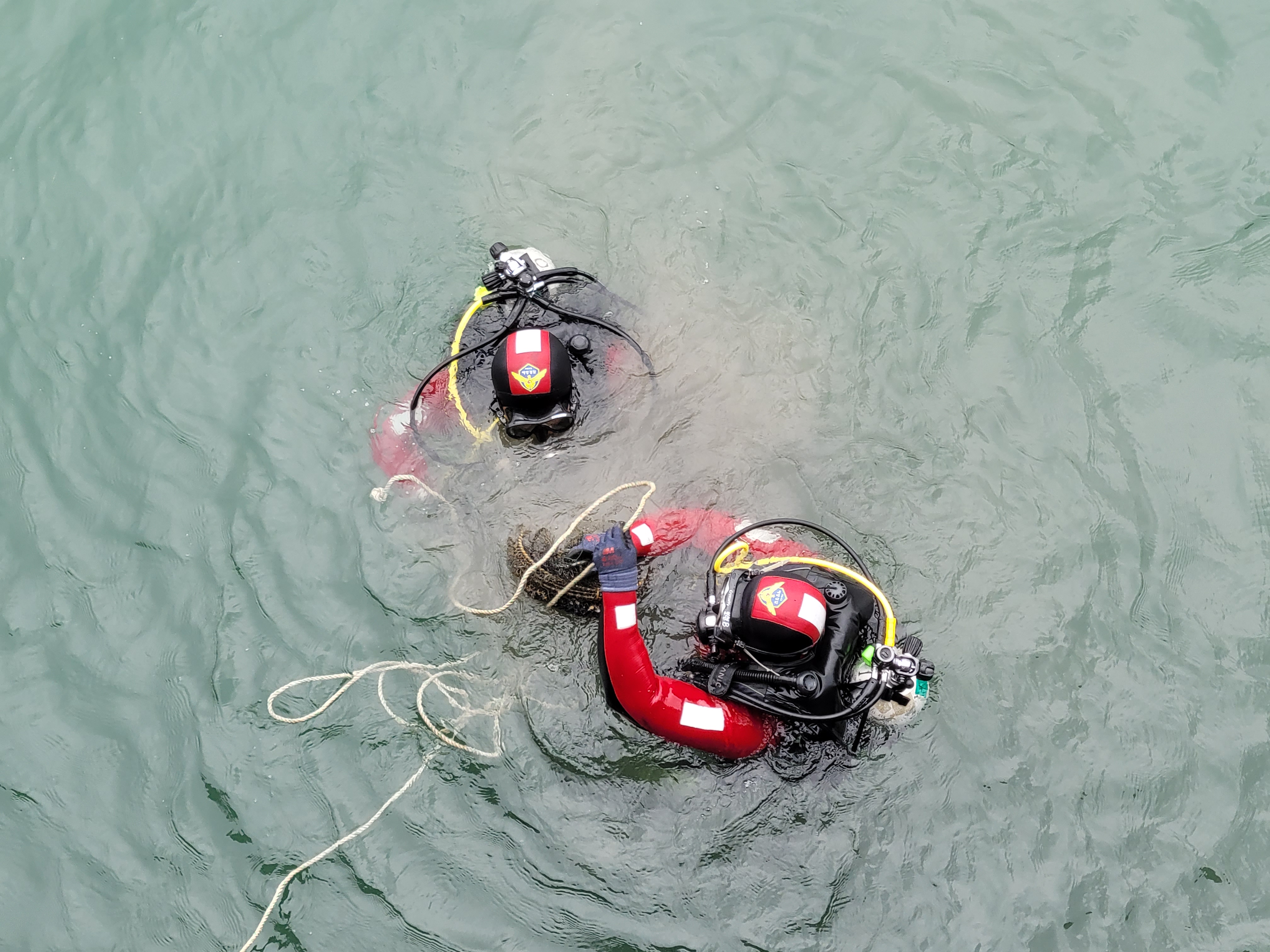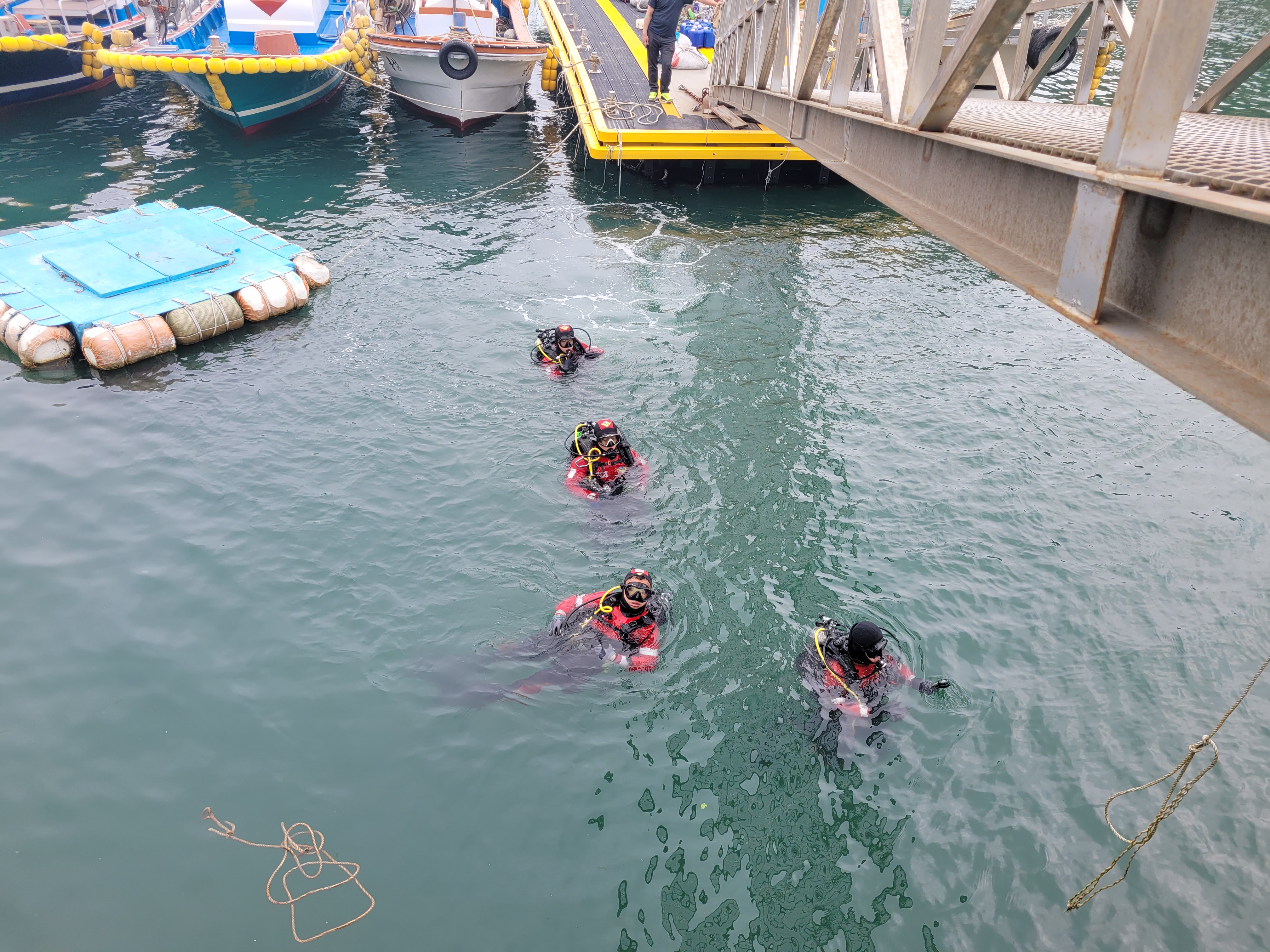호도항에서는 보령해경 구조대원이 직접 잠수해 수중에 침적된 쓰레기를 수거했다.