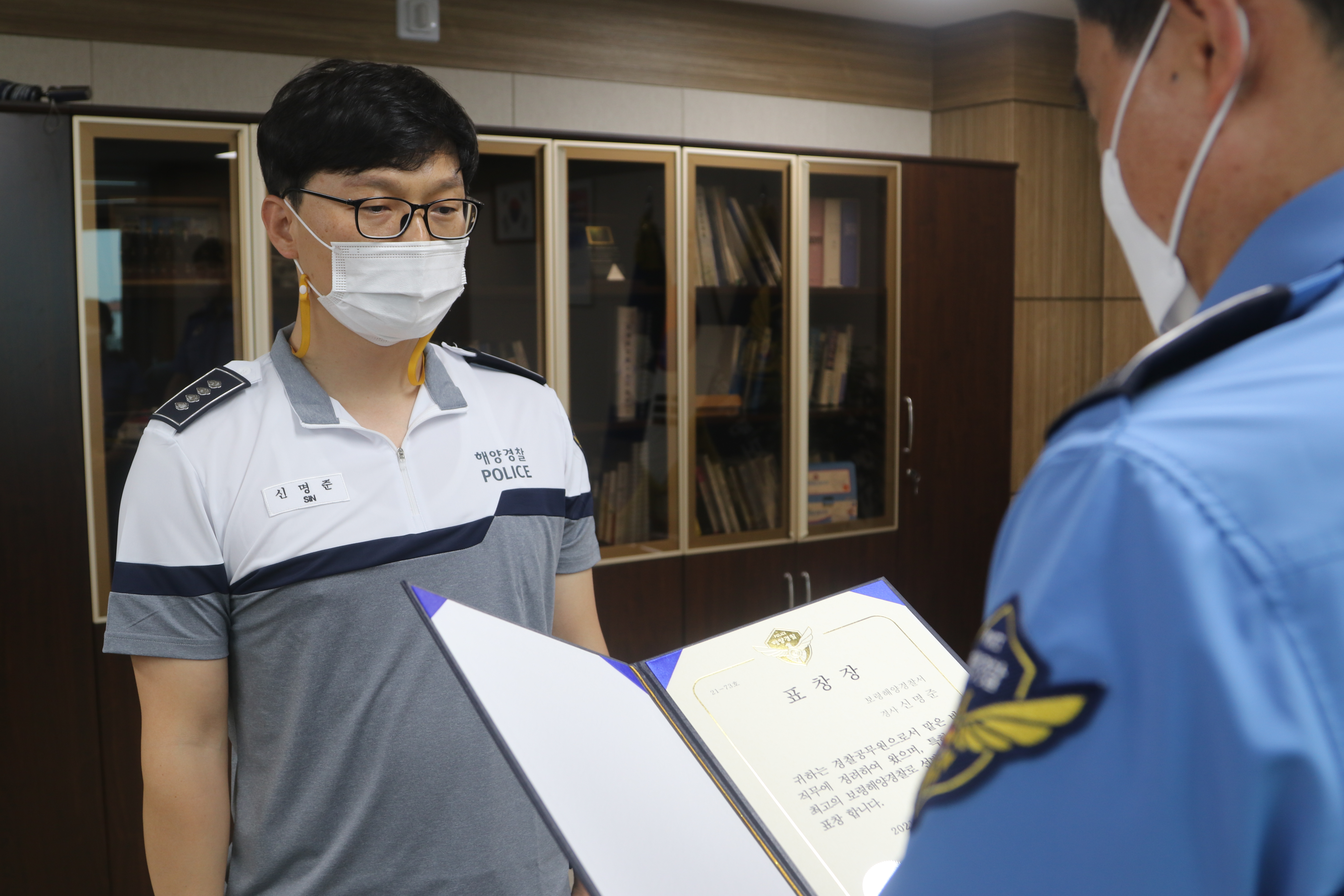 그밖에도 신 경사는 지난 5월 29일 서천앞바다에서 발생한 어선 좌주사고 등 해양사고 구조와 파출소 민원사항에 대한 신속한 처리로 해양안전과 질서 확립에도 기여하였다.