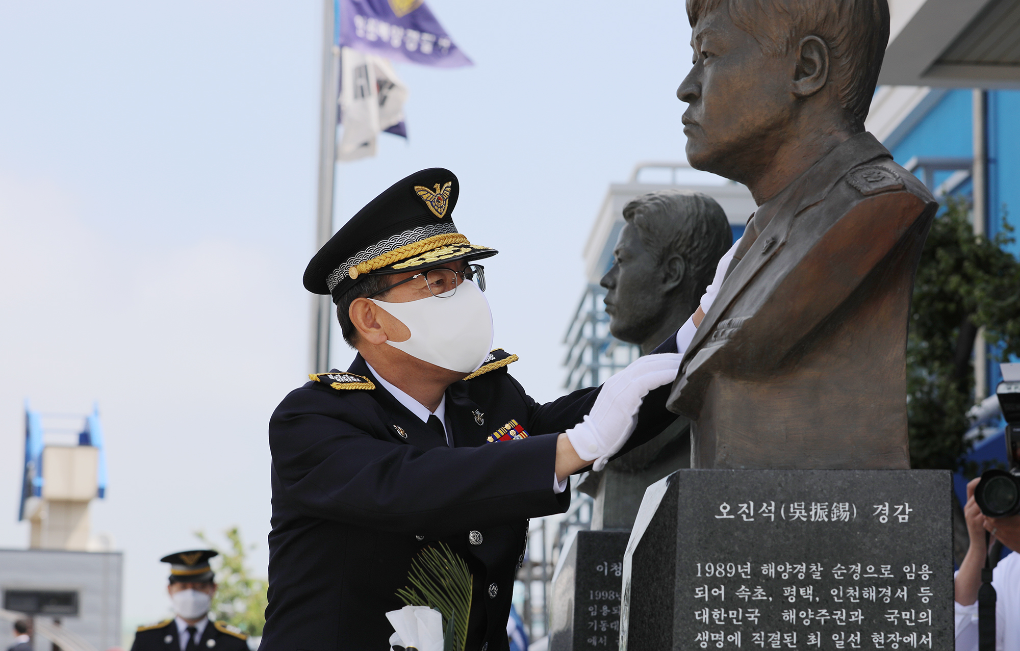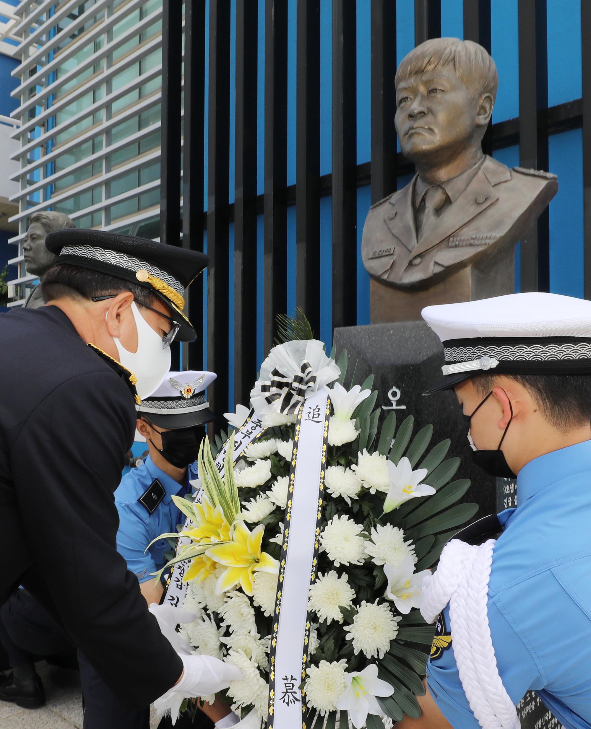 추념식이 열린 인천경찰서 전용부두 인해관에는 지난 2011년 불법조업 중국어선 단속 중 선원이 휘두른 흉기에 중상을 입고 순직한 故 이청호 경사와 2015년 응급환자 구조 중 부상을 입은 채 끝까지 임무를 완수하다 순직한 故 오진석 경감의 흉상이 세워져 있다.