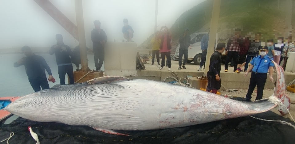 이날 혼획된 밍크고래는 길이 약 7미터, 둘레 4미터 규모로 인근에는 위판장이 없어 울산 방어진 수협으로 이동할 계획이다.