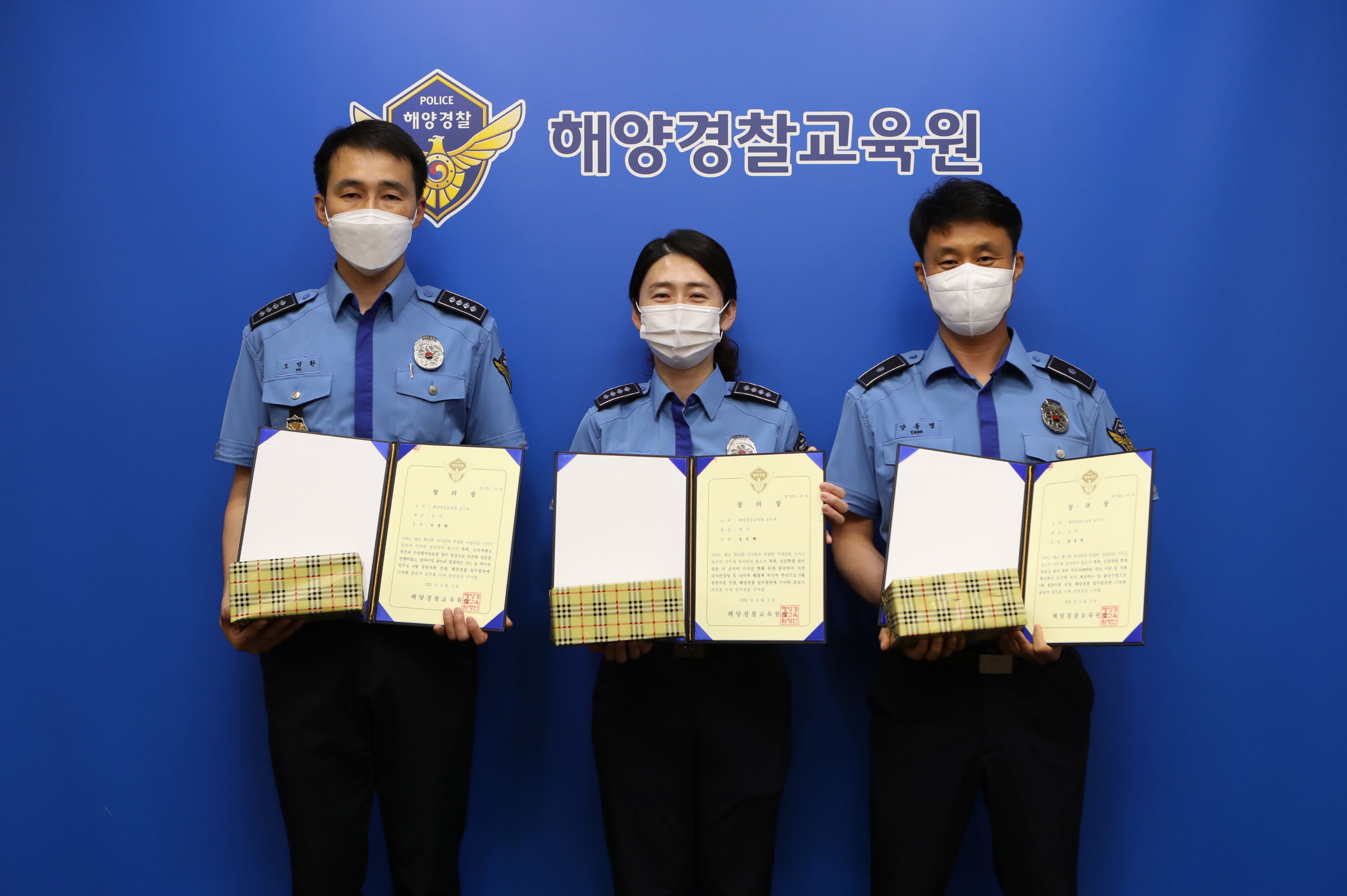 7일 해양경찰교육원(원장 김성종)은 5월의 ‵칭찬주인공′으로 운영지원과 양동명 경위·교수과 오명환 경사·교무과 송민혜 경사 등 3명의 직원을 선정·격려했다고 밝혔다.