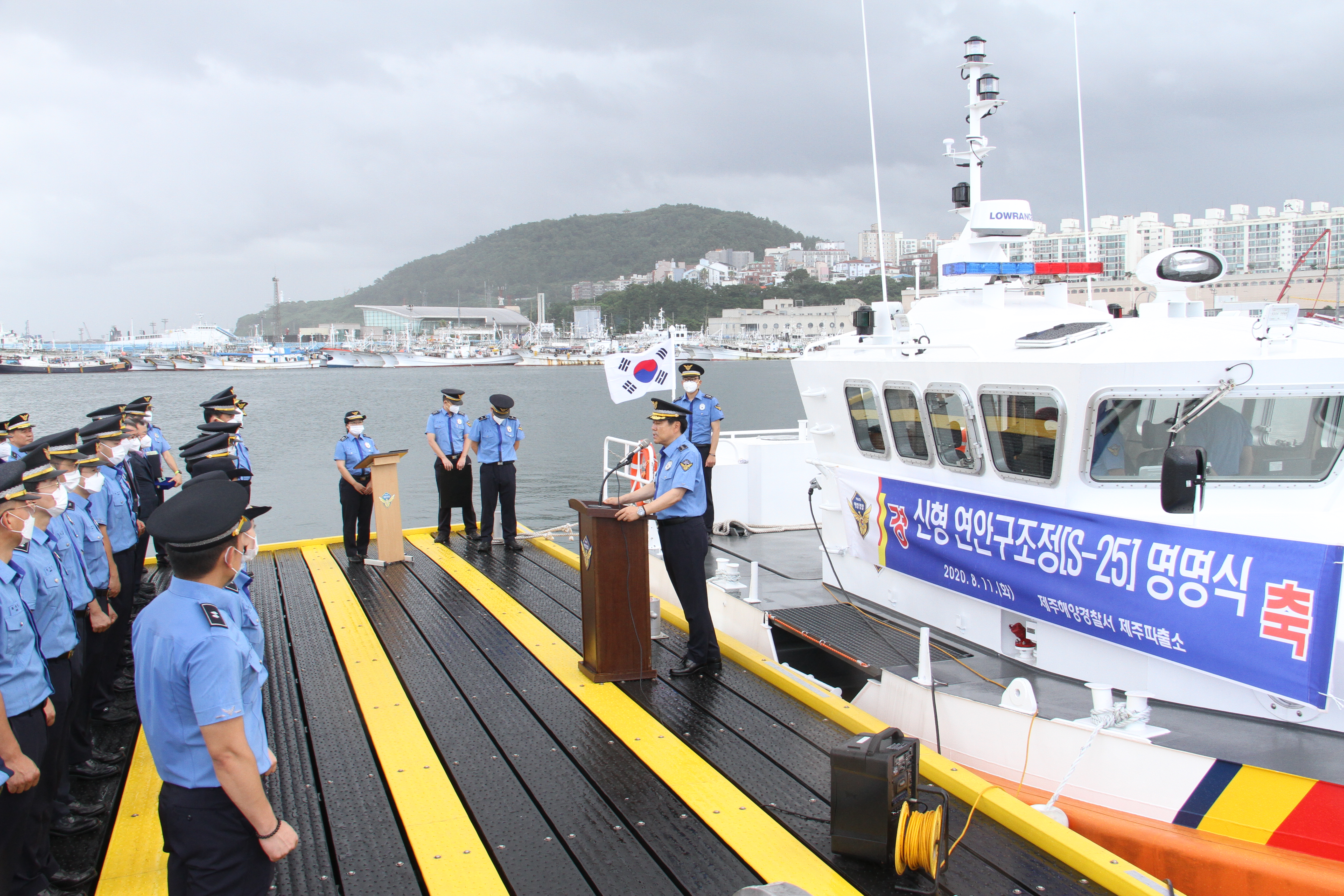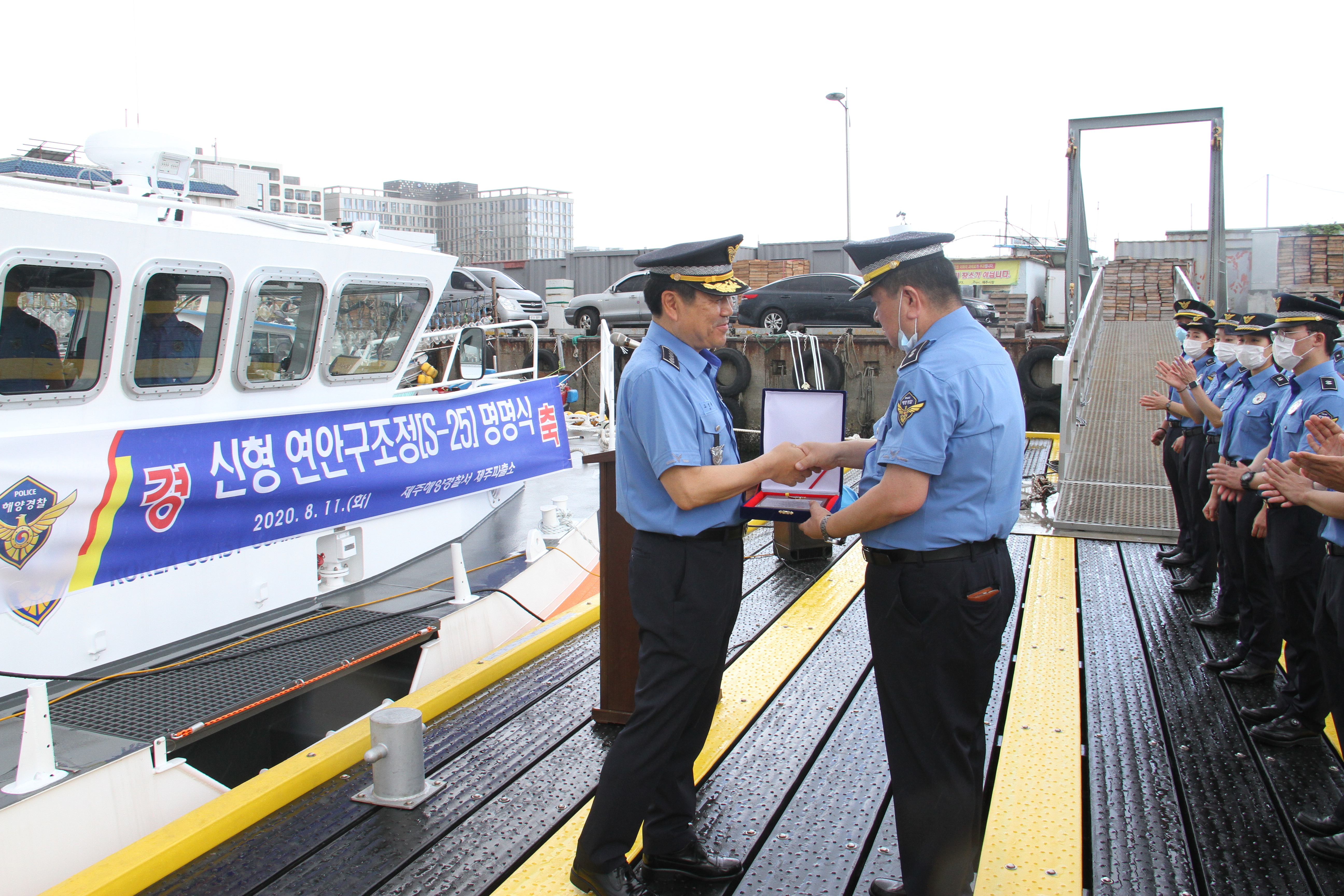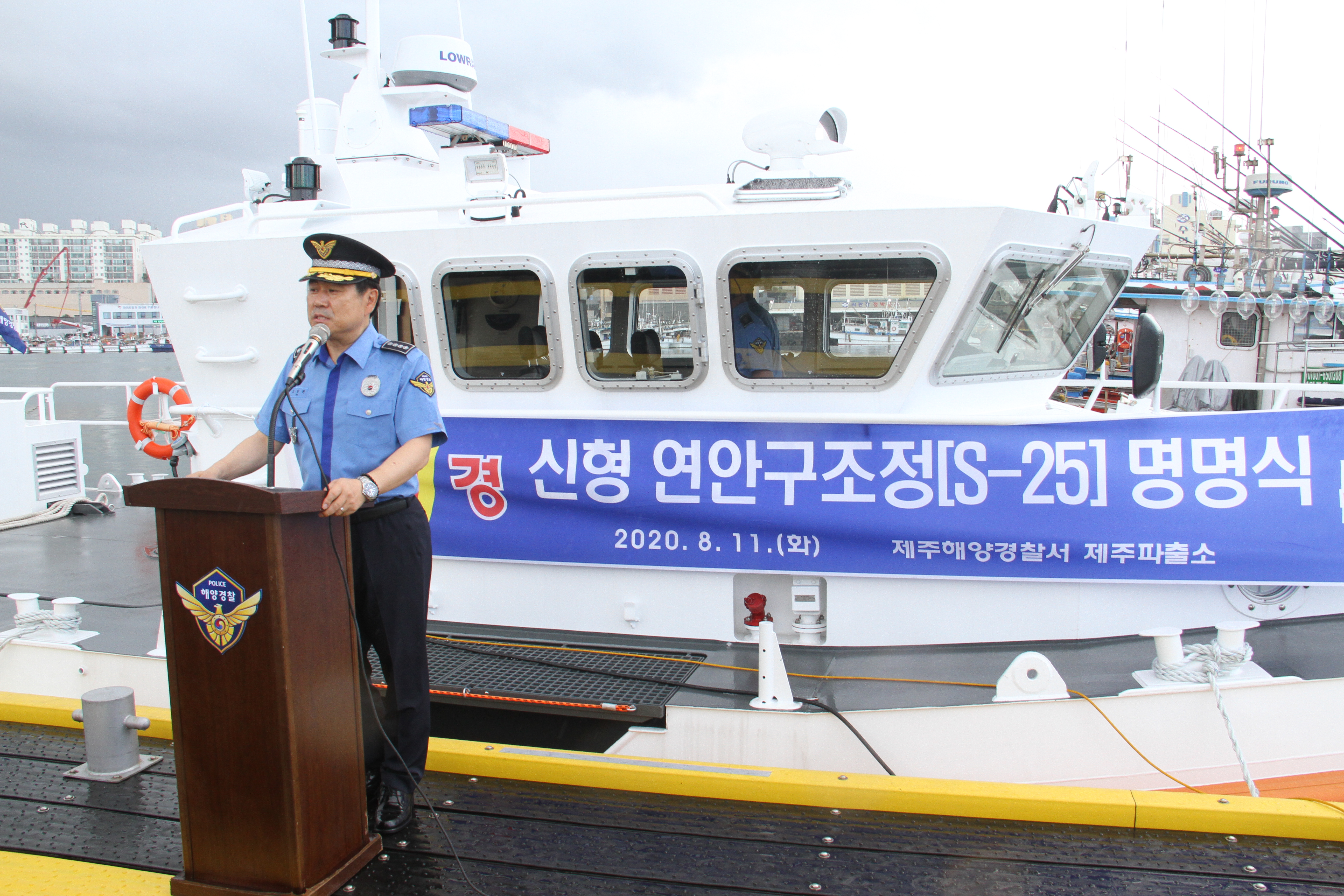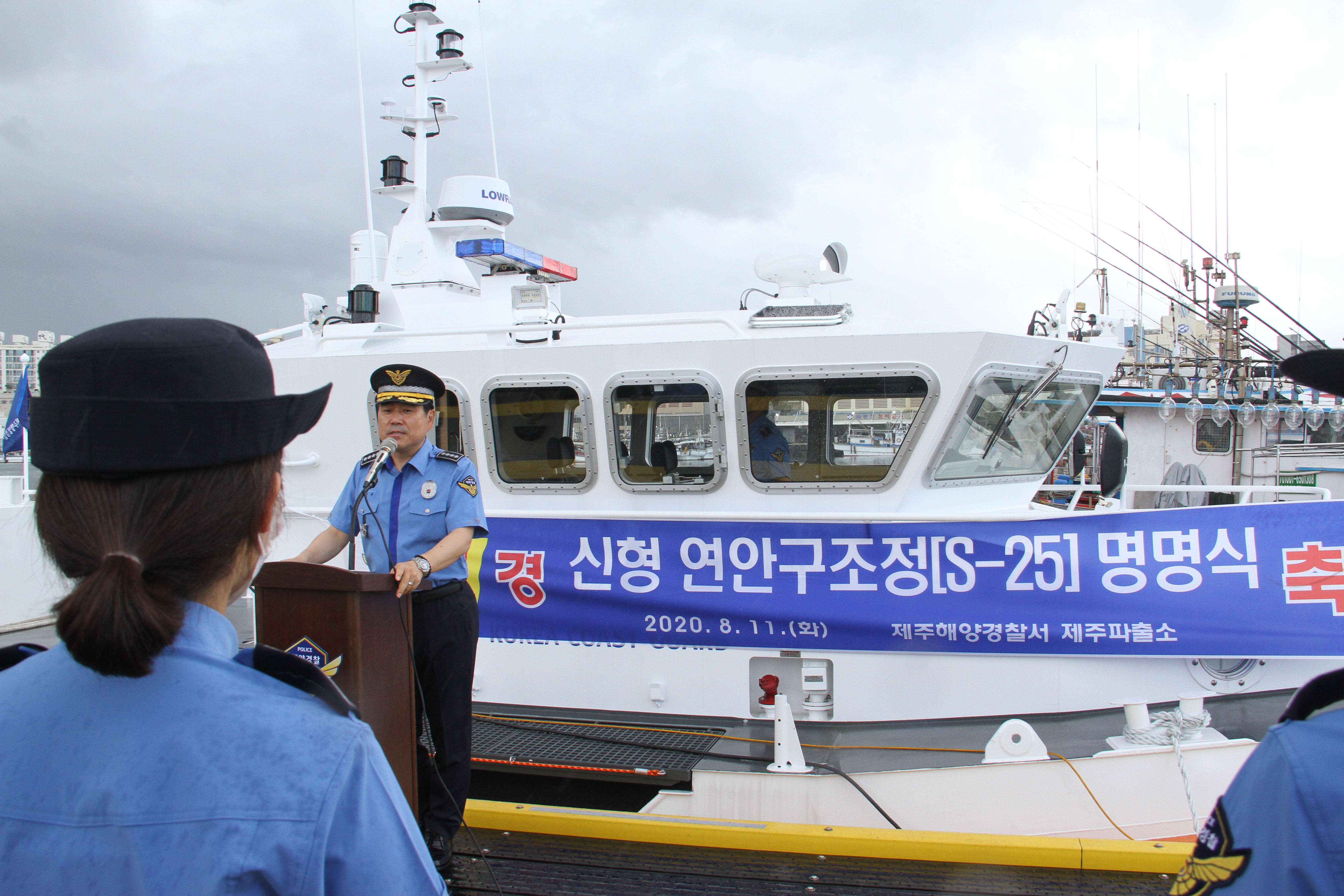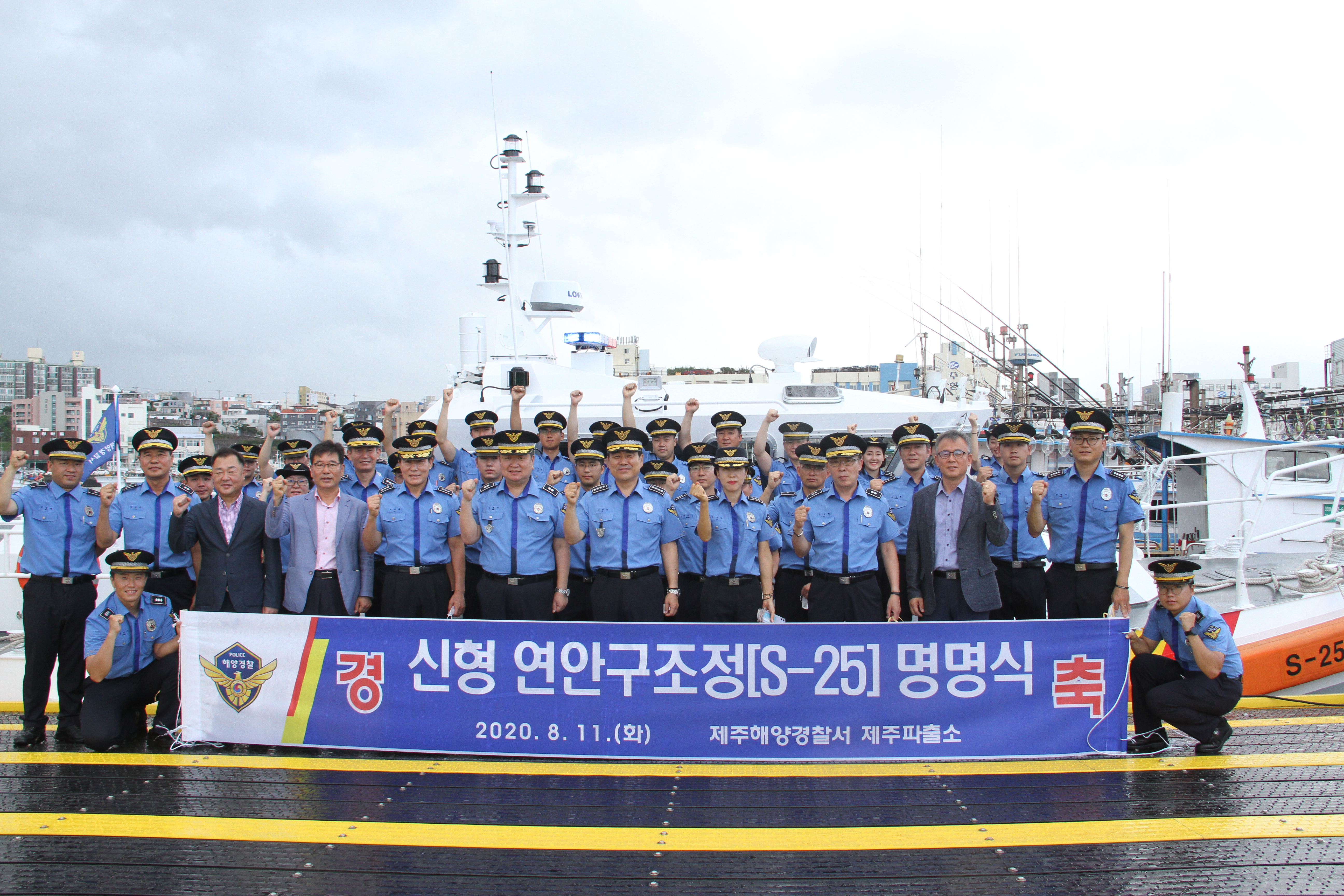 오늘 오전 10시 제주항 연안구조정 푼툰계류장에서 제주해경 제주파출소 소속 연안구조정 S-25정의 명명식을 고민관 제주해경서장 및 각 과장, 파출소 경찰관 등 40여명이 모여 명명식을 가졌다고 밝혔다.