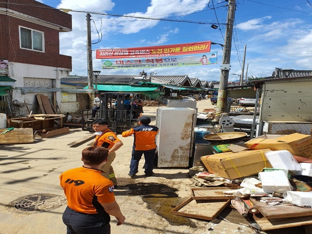 현장에 파견되었던 함창민소방관은 “나의 가족이 수해를 입었다는 마음으로 상인들과 함께 아픔을 나누고, 하루 빨리 원상복구되어 다시 5일장이 열릴 수 있기를 기원한다.” 라고 현장 상황을 전했다.