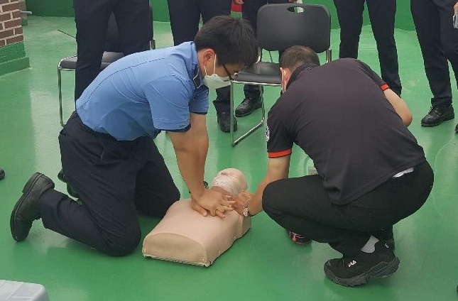 이에 동해해경 묵호파출소에서는 인명사고 발생 시 효율적이고 신속한 구조와 함께 전문성을 더하고자 현장 경찰관 대상으로 전문 교육기관(중앙EFR교육센터) 강사를 초빙하여 심폐소생술(CPR) 및 응급처치 교육을 이수했다.