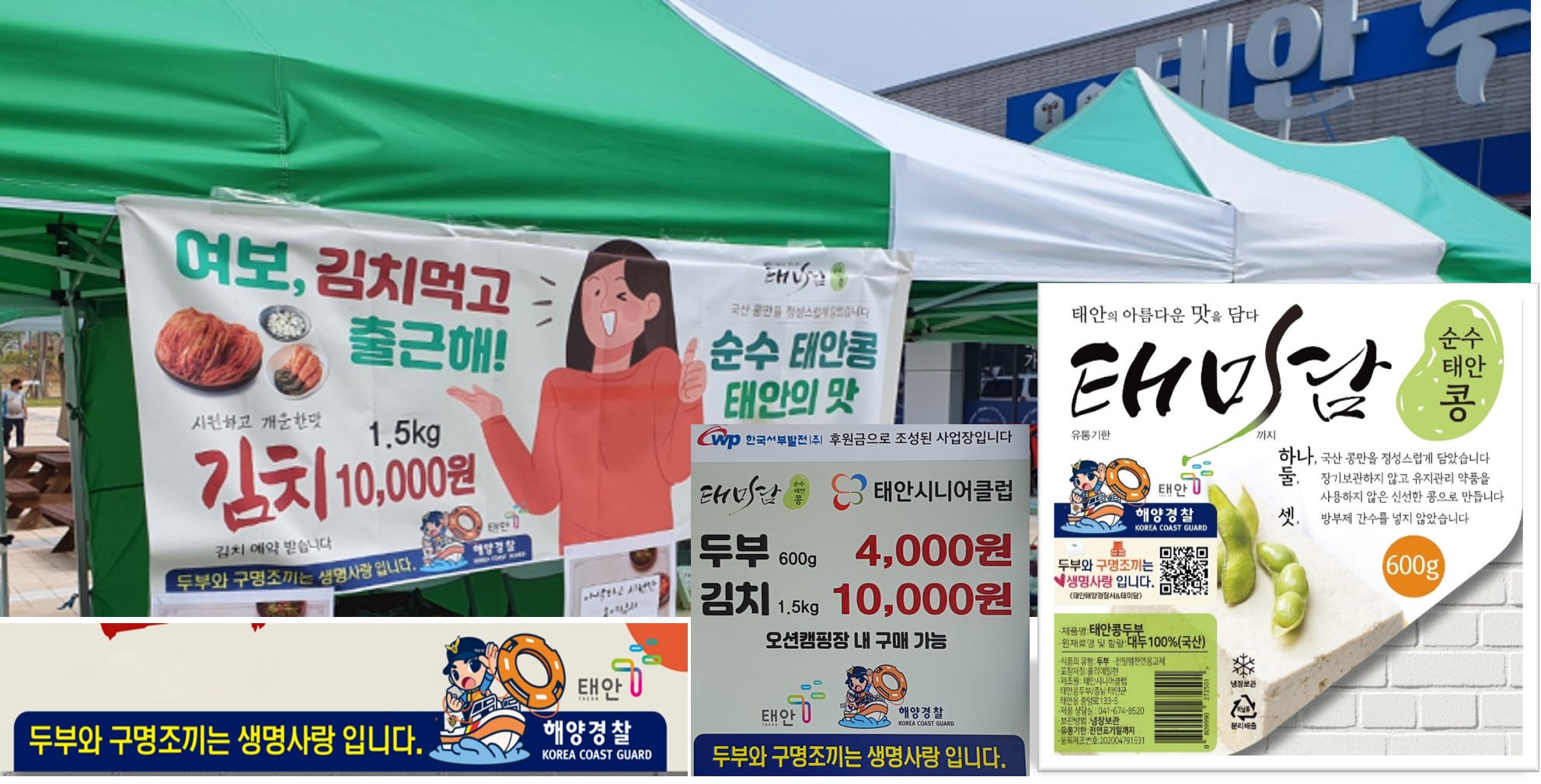 이번에 태안시니어클럽 생산 로컬 푸드 상품의 포장, 광고 현수막, 상품매장과 상품트럭 등에 ‘구명조끼는 생명사랑입니다’