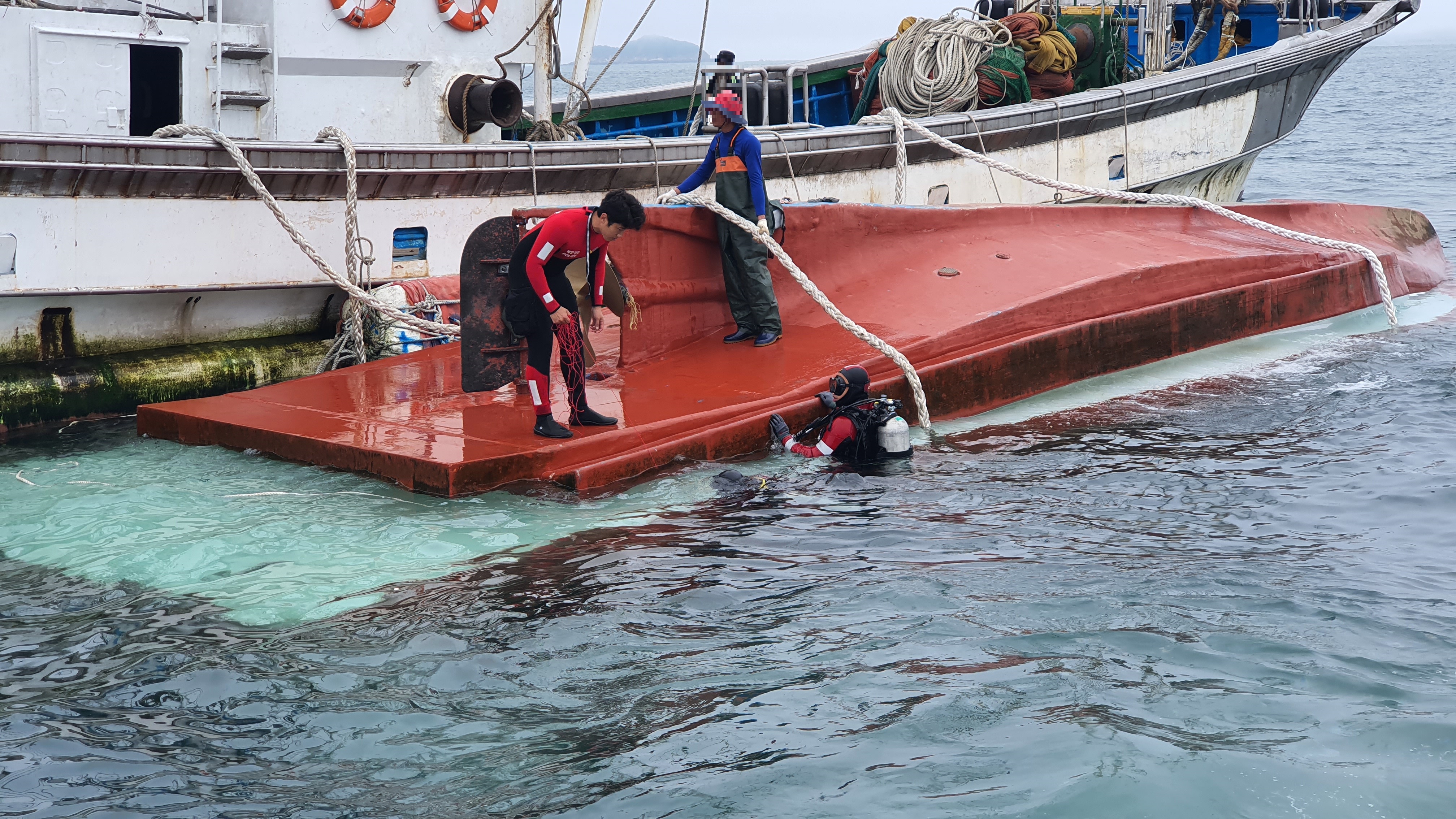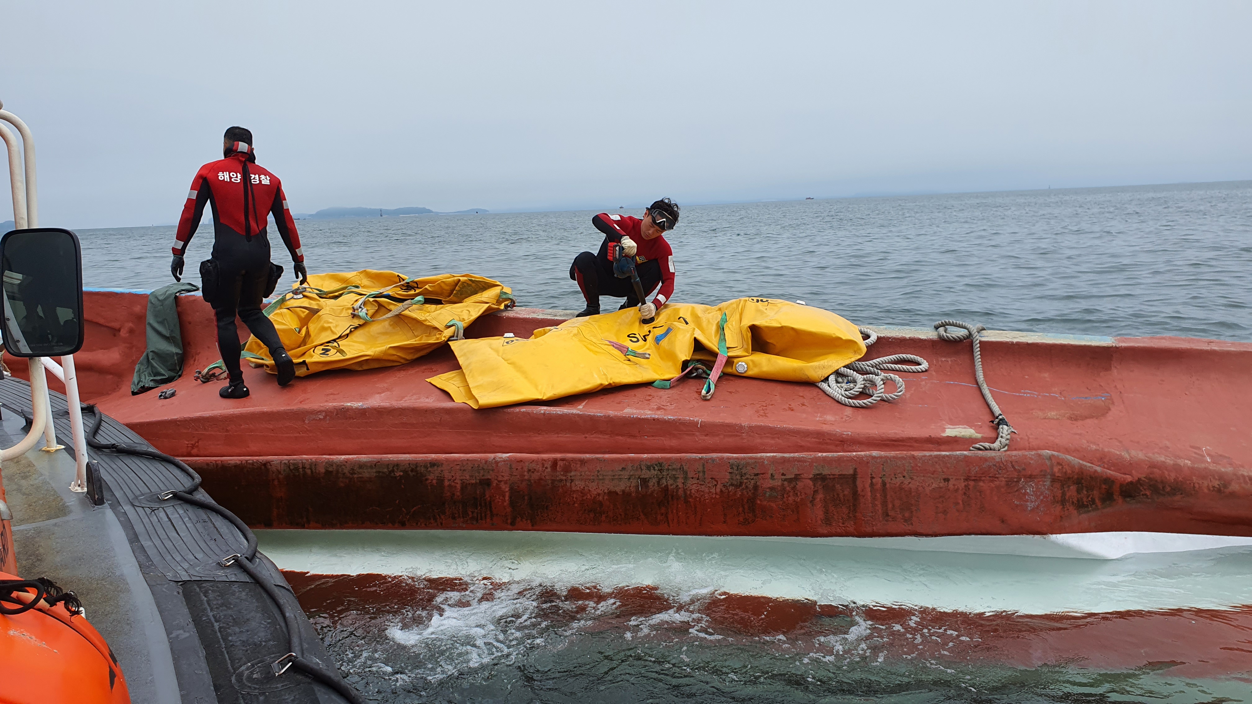 또한 선박이 침몰되지 않도록 부력재인 리프팅백 2개를 추가로 설치하였다.