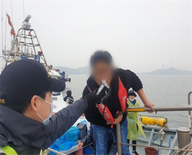 ▲ 선박 운항자 음주측정 단속 모습