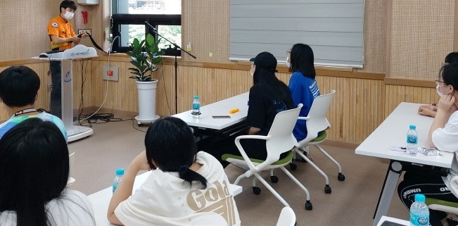 [고흥소방]=고흥소방서(서장 박상진)는 12일 여성지원센터 3층 강당에서 자원봉사 프로그램 참여 학생 45명을 대상으로 소방안전교육을 실시하였다.