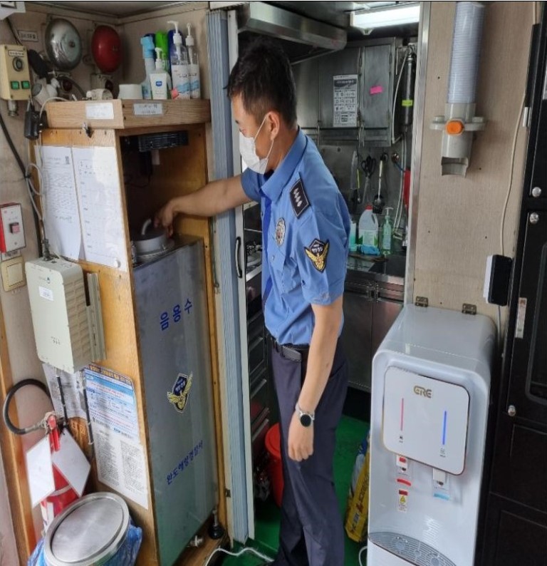 완도해경은 50톤급 이하 소형경비함정 7척을 대상으로 먹는 물 음용수탱크 등 관리 상태를 중점으로 점검한 결과 기관실내 설치된 청수펌프·공급관·탱크 등 노화와 부식 상태가 높아 개선이 필요하다고 보았다.