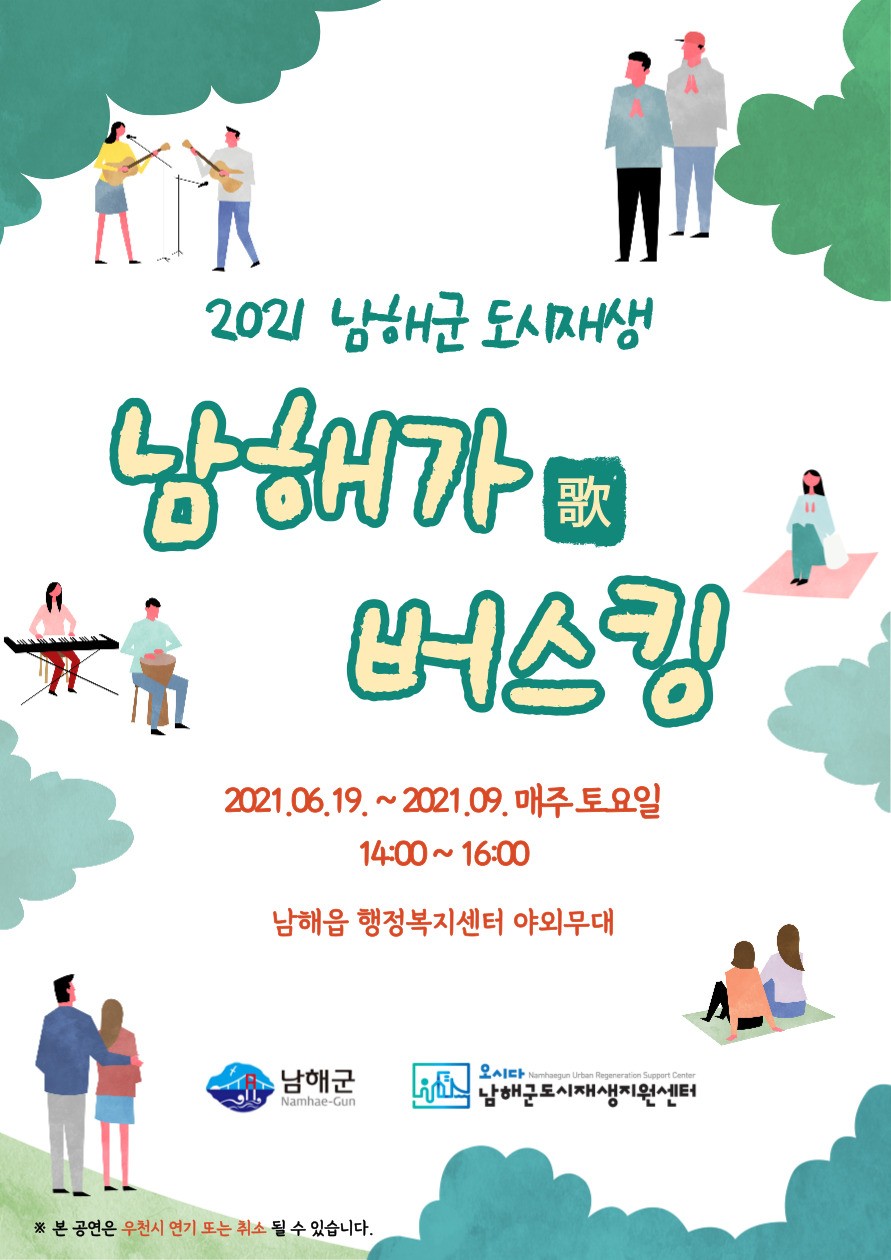 6월 19일부터 9월까지 매주 토요일 오후 남해 읍사무소 앞 행정 복지센터 야외무대에서 진행되고 있다.