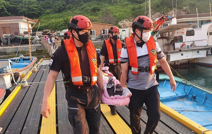 해경은 경비함정과 파출소 연안구조정을 급파하고 이날 오후 7시 42분경 긴급이송을 시작, 같은 날 오후 10시 49분경 진도군 서망항에 대기 중인 119 구급대에 환자와 보호자를 무사히 인계했다.