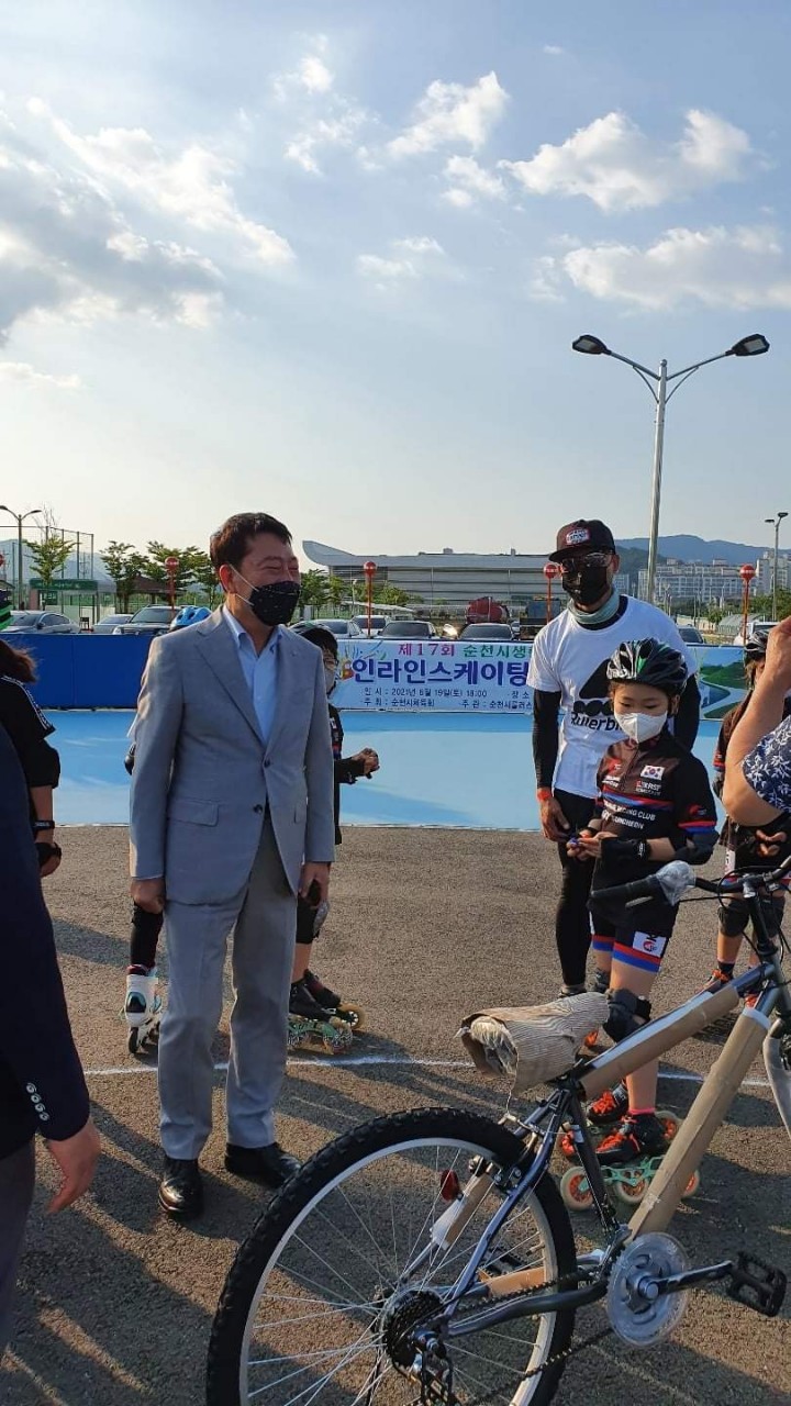 [해륙뉴스1=유경열기자]=지난 19일 "순천시 체육회 이상대 회장"은 서면 강청 수변공원 파크골프장, 검도대회, 인라인스케이트장, 당구대회 조례동 VIP당구장을 방문하여 생활체육대축전에 참가한 선수들을 격려해 주었다.