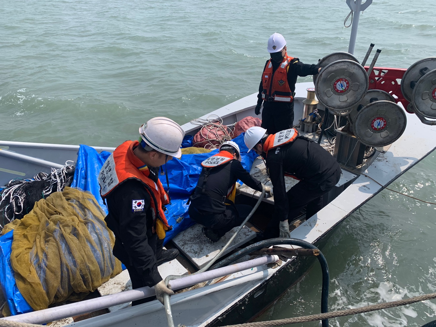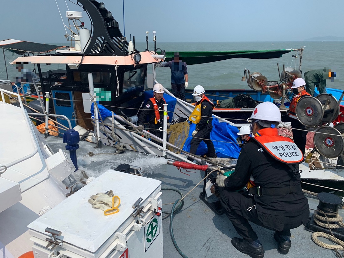 신고접수 7분 만에 현장에 도착한 해경은 A호에 등선해 선수 갑판 쪽 어창에서 해수가 유입이 되는 것을 확인하고 신속하게 배수작업을 실시했다.