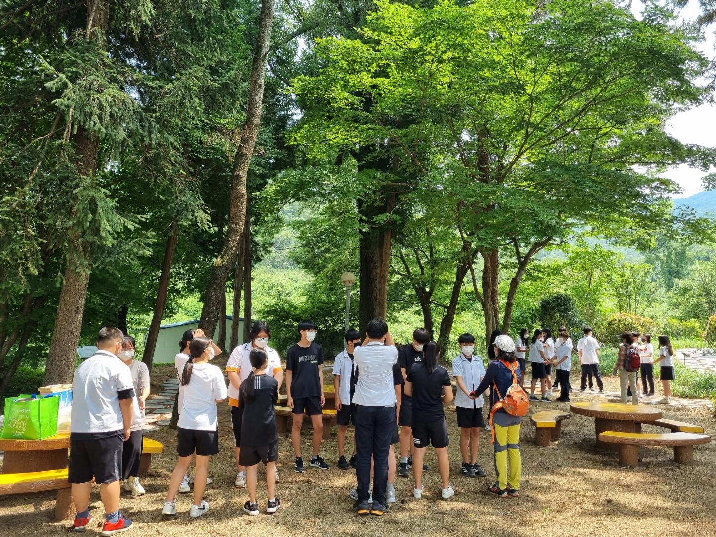 학생들의 생태 감수성과 회복탄력성 증진을 도모하고자 마련한 숲속교실은 6월 25일 13시 50분~15시 30분(80분간) 숲해설가 2명이 강사로 나서 전교생 26명을 두 팀으로 나눠 야외수업으로 진행됐다.