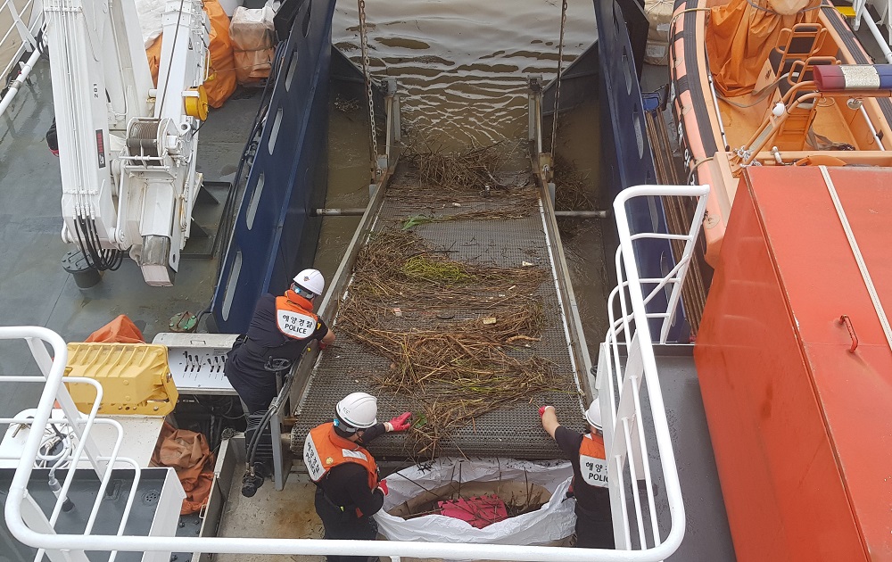 목포해양경찰서(서장 임재수)는 8일 오전 목포시 삼학도와 평화광장 앞 해상에서 집중호우로 떠내려 온 수초더미 등 해양쓰레기 4톤을 수거했다고 밝혔다.