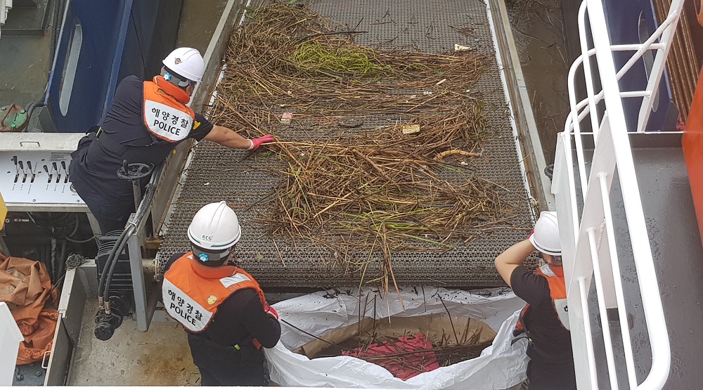 이날 해경은 방제정을 신속하게 현장에 투입해 해상교통 운항 저해 및 해양오염을 유발시키는 해양쓰레기를 수거하여 해양환경공단에 인계했다.