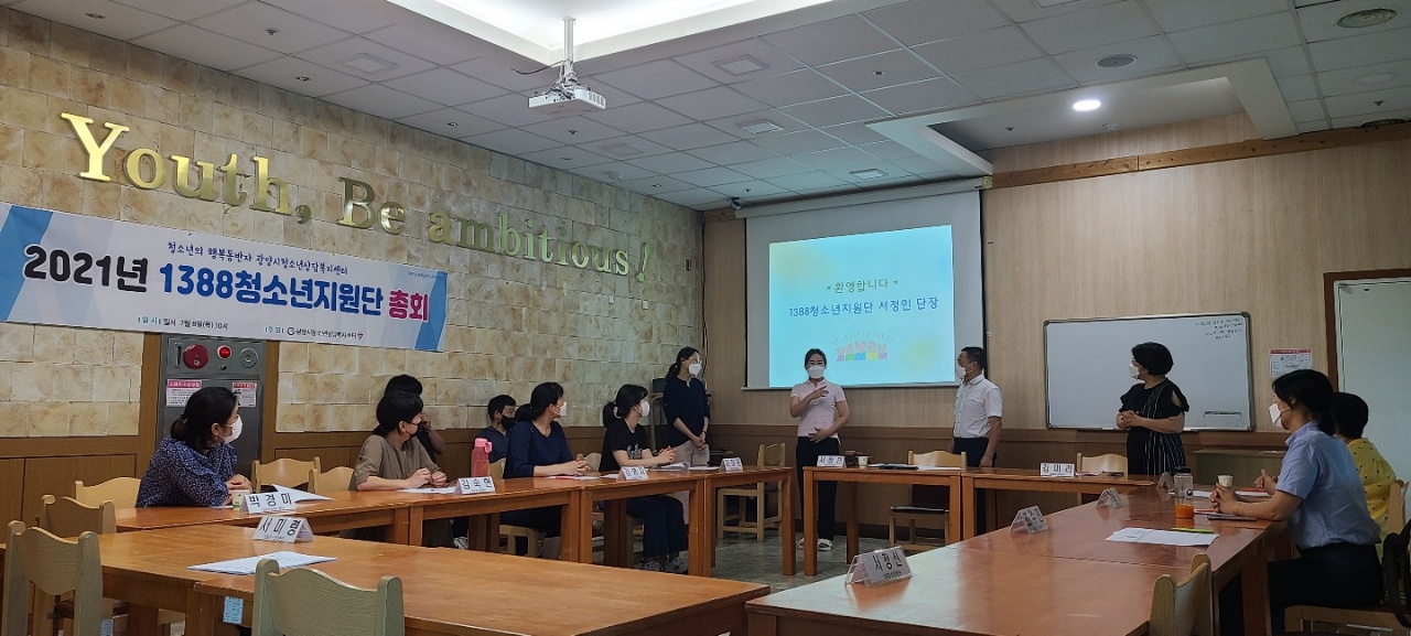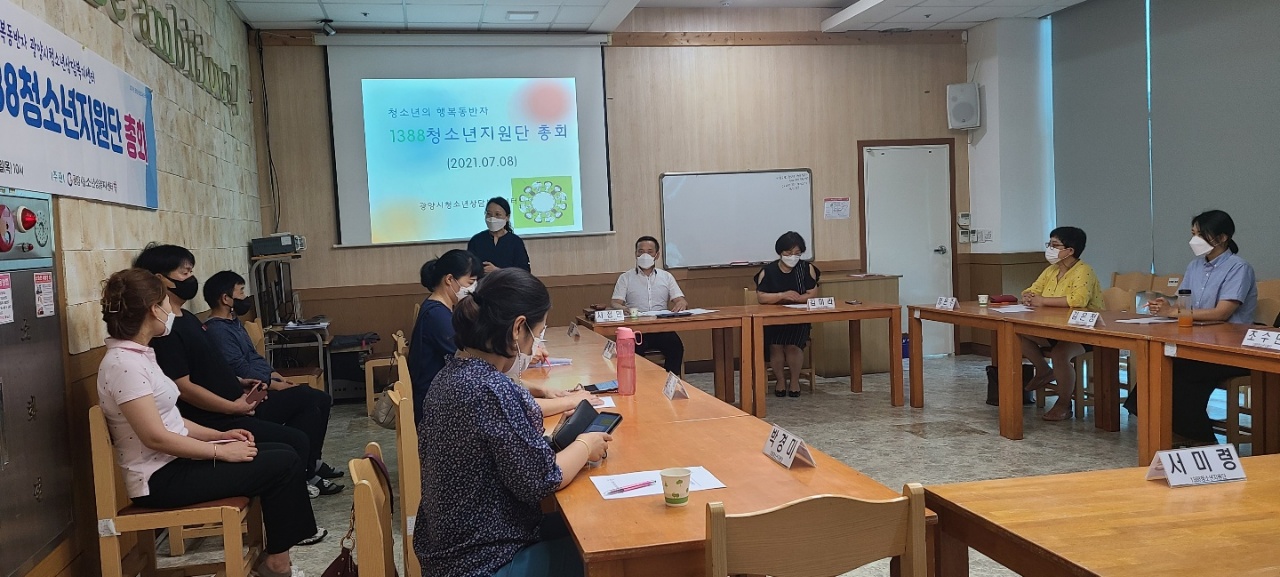 광양시 1388청소년 지원단 총회 에서는 1388청소년 지원단장 선출 과 임기 및 활동 방안에 대하여