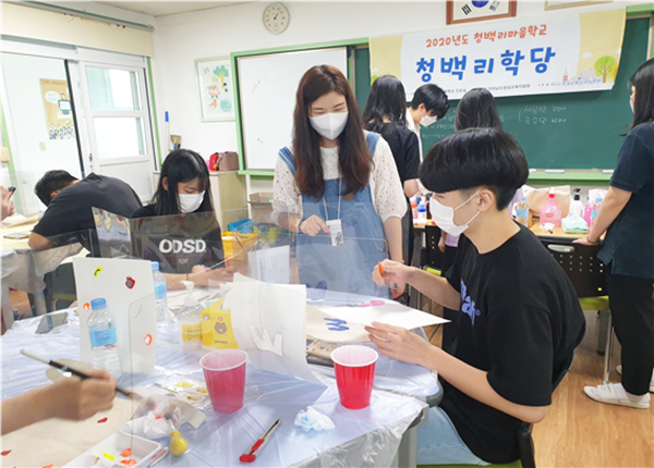코로나19로 인해서 7~8월에 시작하게 된 ‘청백리 여름학당’은 예술·패션 분야을 주제로 전문예술강사와 함께하는 스텐실패션가방, 나만의아트도자컵, 솔솔예술부채, 패션스타일리폼 등 다양한 예술·패션분야 체험프로그램을 진행하였다. 또한 세대공감 ‘여름학당 어울림마당’은 코로나19로 인해서 어르신들과 함께 활동이 어려워 한땀한땀 손바느질로 면마스크를 만들고, 어르신들의 이름이 새겨진 폴리카보나이트 투명문패 재료에 옐로우시티를 상징하는 황룡강변 노란꽃을 그려서 만든 예술문패를 직접 전해드리기로 하였다.