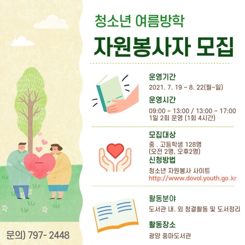 - 광양중마도서관, 청소년 여름방학 자원봉사자 모집 - - 7월 19일부터 청소년자원봉사 사이트에서 신청 -...