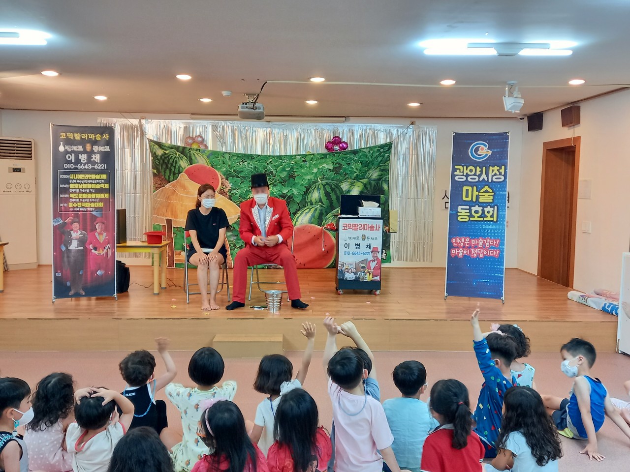 [해륙뉴스1=유경열기자] - 광양시청 마술동호회(회장 탁우경)는 7월 15일 광양읍 삼성 유치원에서 원생들과 꿈 같은 추억을 만드는 마술 재능 기부했다. -