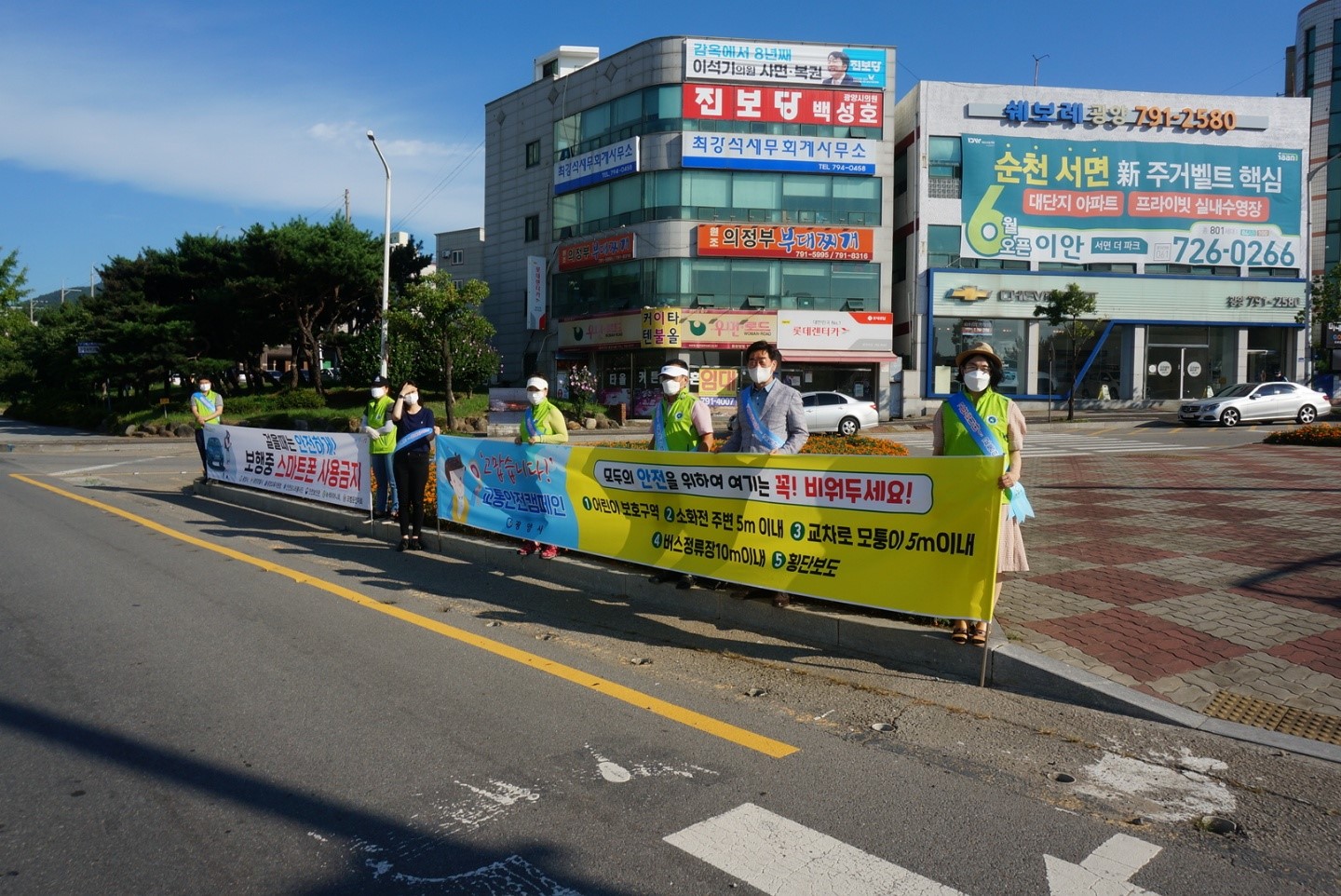 교통 안전 캠페인에는 사단법인 안전 모니터 봉사단. 행정안전부 안전보안관. 광양시 안전총괄.광양 교육 지원청. 광양 모범 운전자회. 광양 녹색 어머니회. 광양 라이온스클럽. 광양 가야라이온스클럽등 여러단체의 회원 100여명이 참석한 가운데 더운 날씨에도 이른아침부터 우리지역의교통 안전을 위해 "고맙습니다." 교통 안전 캠페인을 실시하였다.