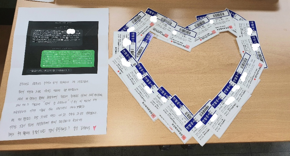 22일 광양소방서에 따르면 전날 오후 3시 30분경 마스크를 착용한 20대 중반으로 보이는 남성이 손편지와 헌혈증 20매를 전했다.