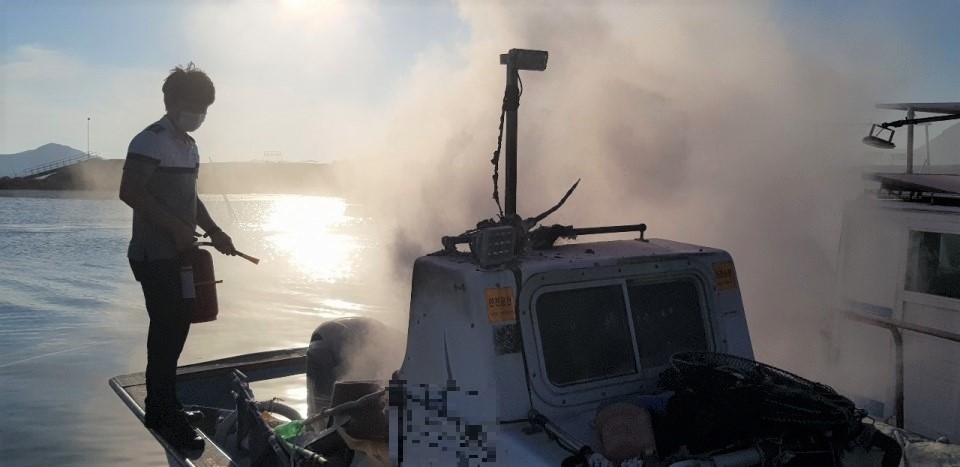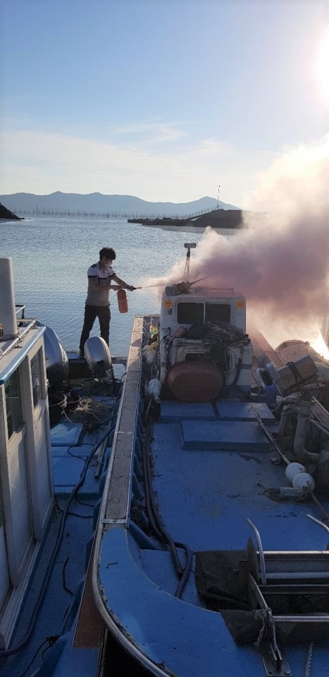 경찰관 2명은 인근 출장소에 비치되어 있던 소화기를 이용해 화재를 진압하는 한편, 주변 정박 선박들의 연결줄을 풀어 안전 지대로 이동시켜 화재확산을 막았다.