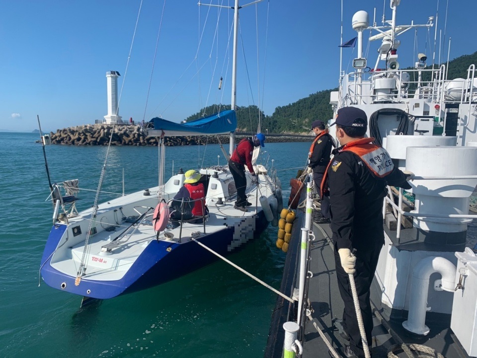 완도해경은 경비함정을 현장에 급파, 승선원 2명의 안전을 확보하고 기상불량과 해상 수심 등을 감안, 경비함정이 직접 여수 초도로 예인하여 안전하게 입항 완료 시켰다.