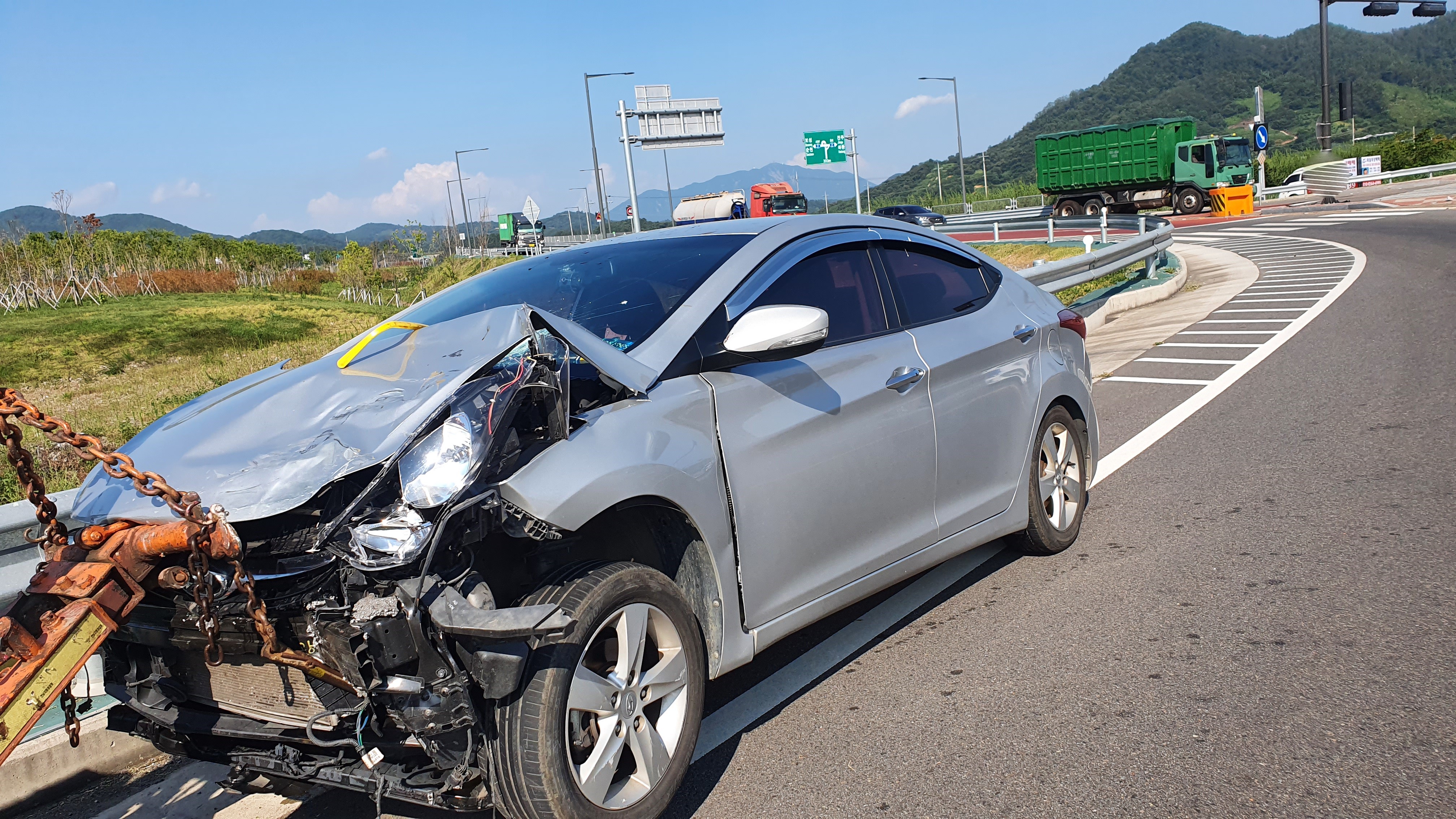 [해륙뉴스1=서정민기자]-금일(7월28일)15시55분경 이륜차와 승용차가 정면충돌하는 사고가 발생하였다.-