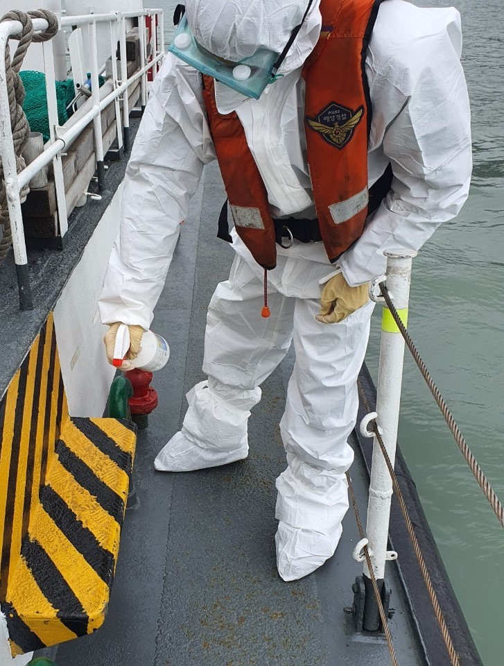 또한 응급환자 이송 등 긴박한 상황 속에서도 음압들것과 같은 방역물품을 적극 활용해 직·간접 감염을 예방하고, ‘함정 클린데이’를 운영해 경비함정 내외 청결상태 향상을 위해 노력하고 있다.