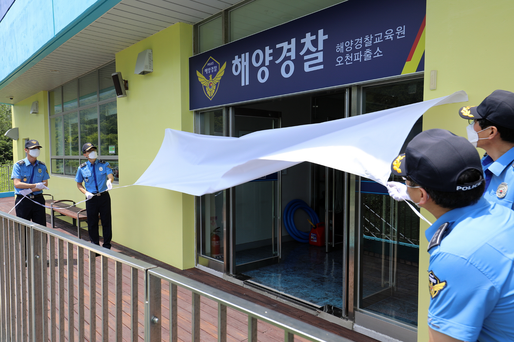 해양경찰교육원(원장 김성종)은 29일 오후 교육원 內 수상레저실습장에서 김성종 교육원장과 교수과장 등 관계자들이 참석한 가운데 모의파출소 현판 제막식 행사를 가졌다고 이날 밝혔다.