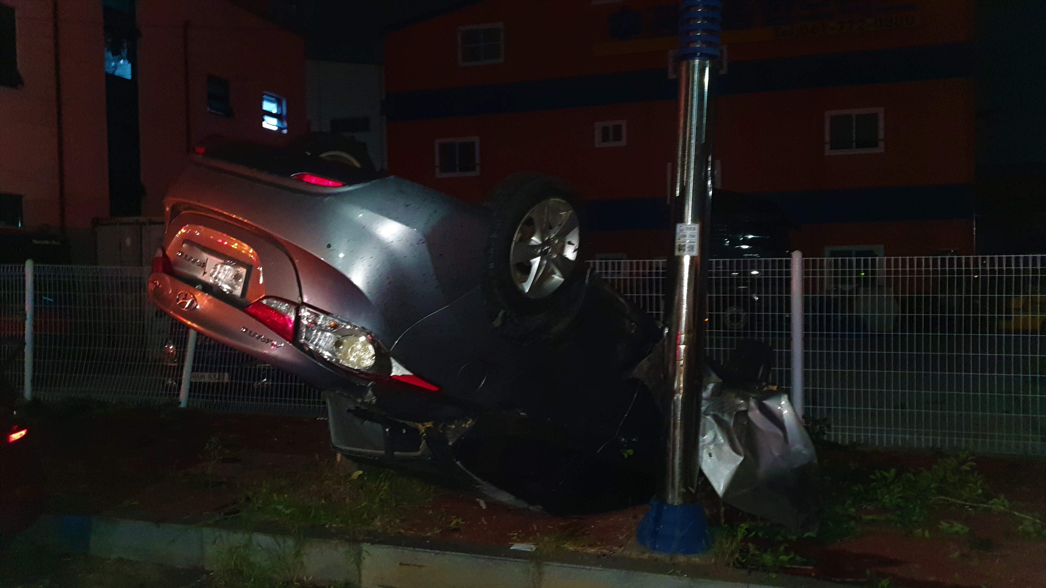 [단독.해륙뉴스1]=서정민본부장 - 광양시 옥곡면 월앙골 사거리부분에서 승용차 전복사고 발생하다. -