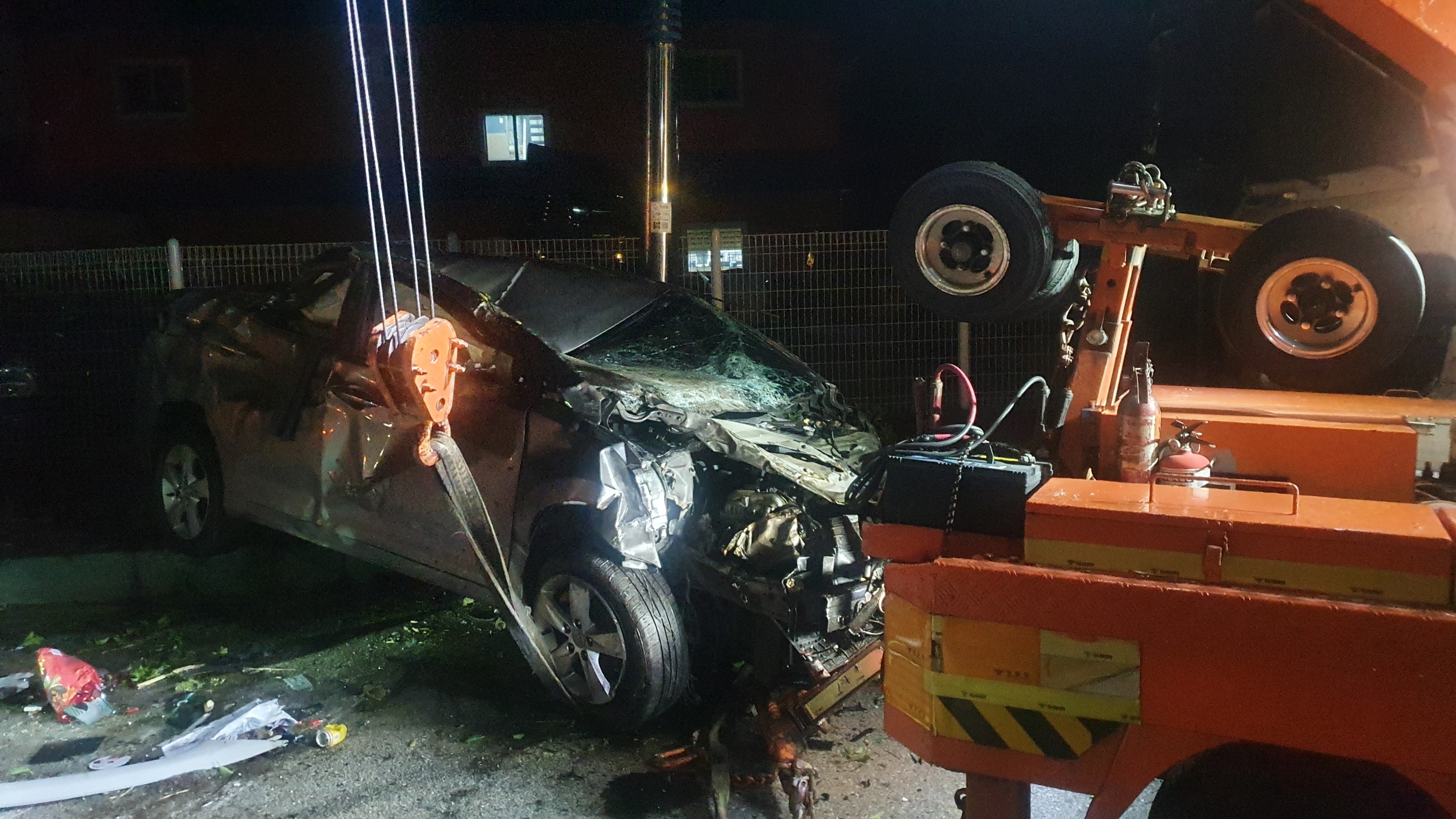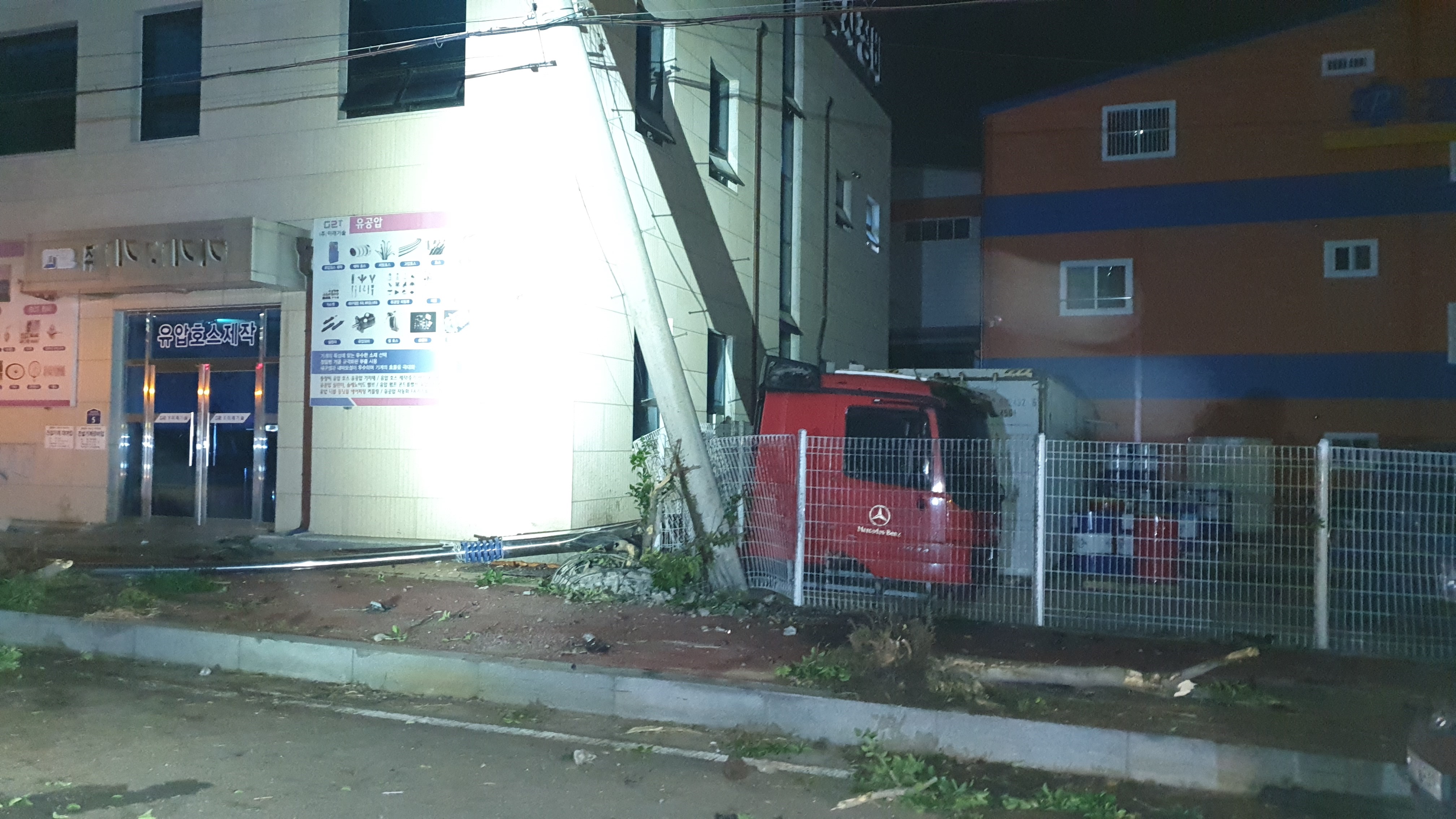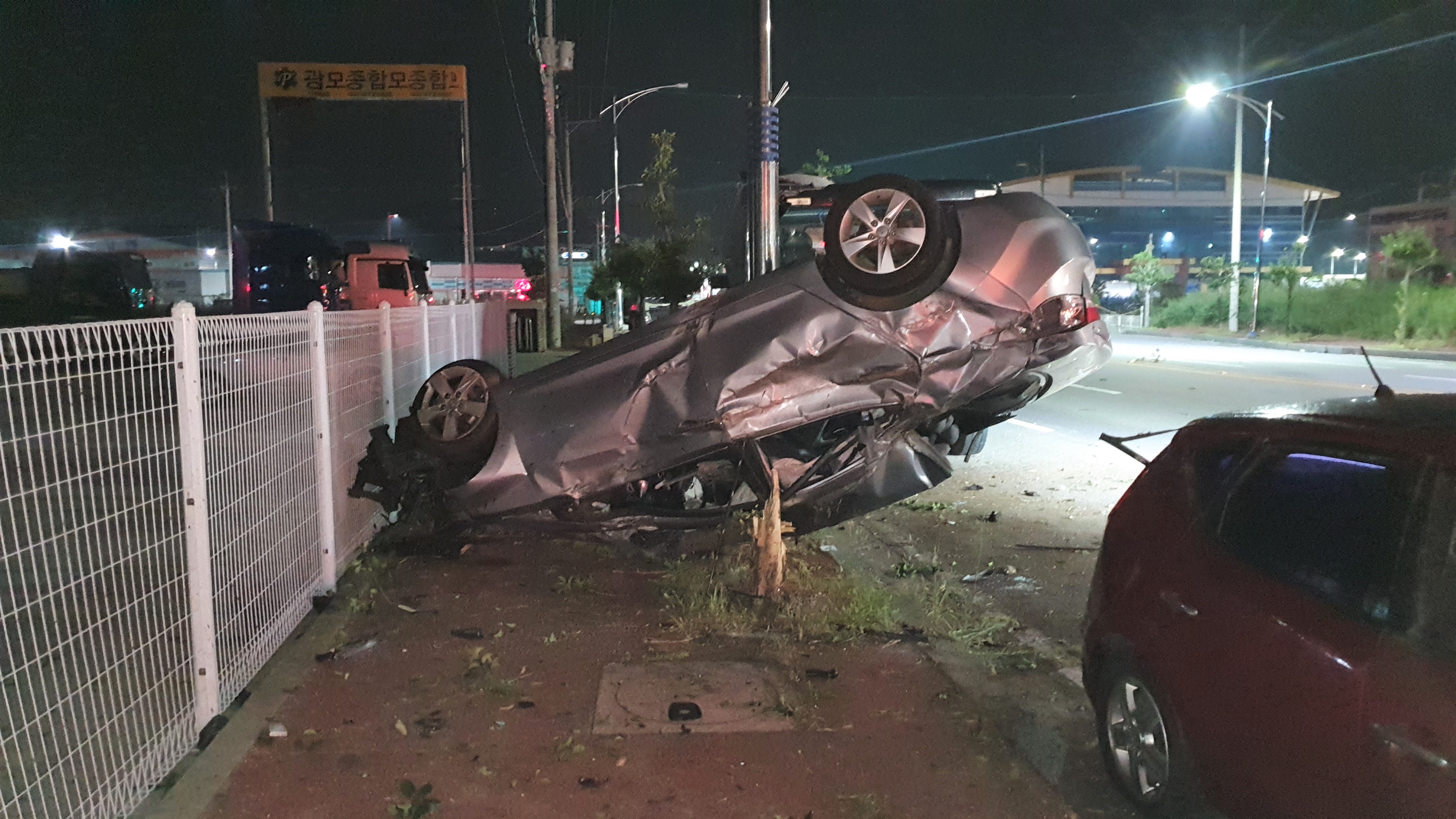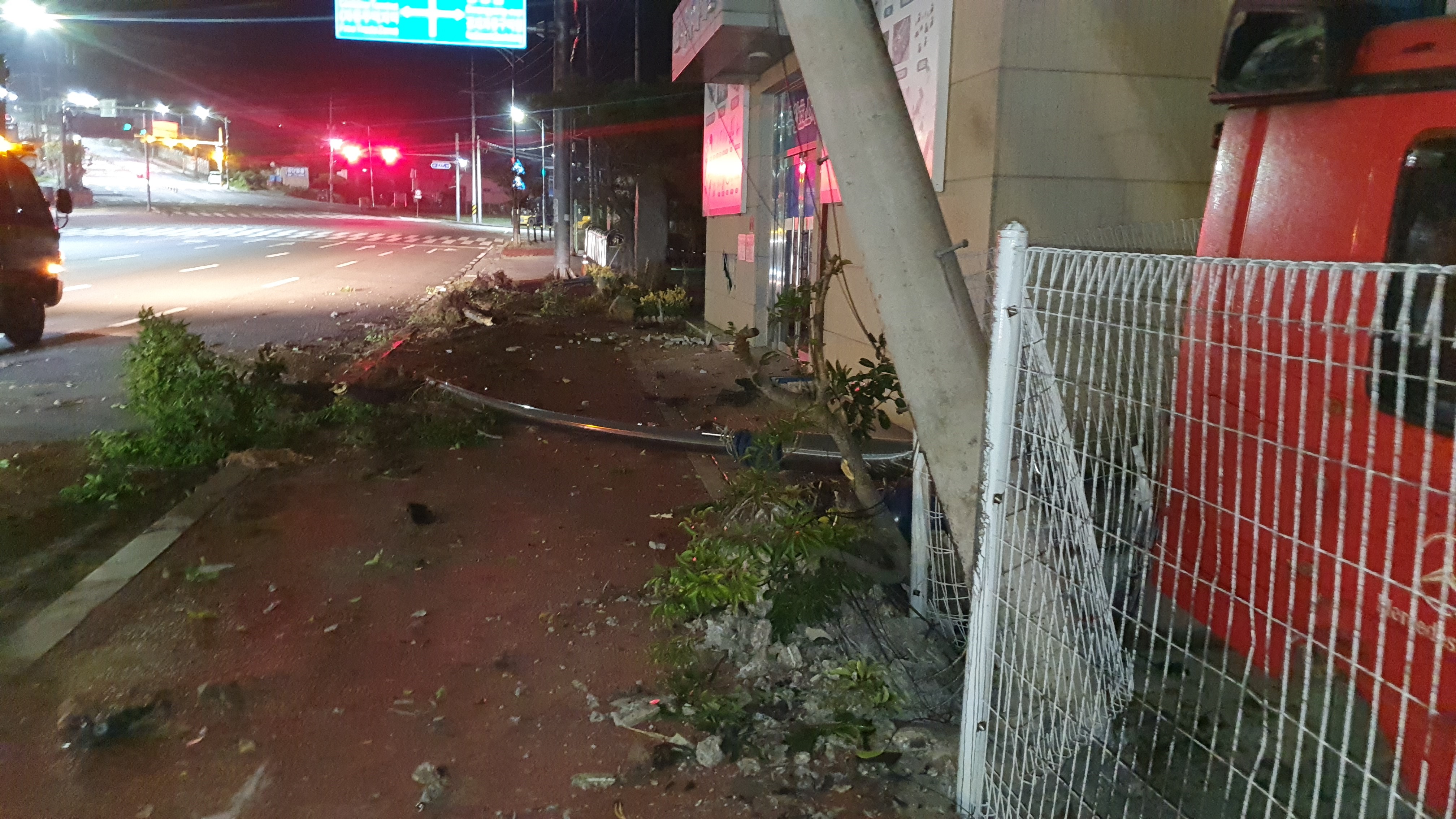 이 사고로 사고현장 주변 전신주가 부러지고 가로등 가로수가 부러졌다.