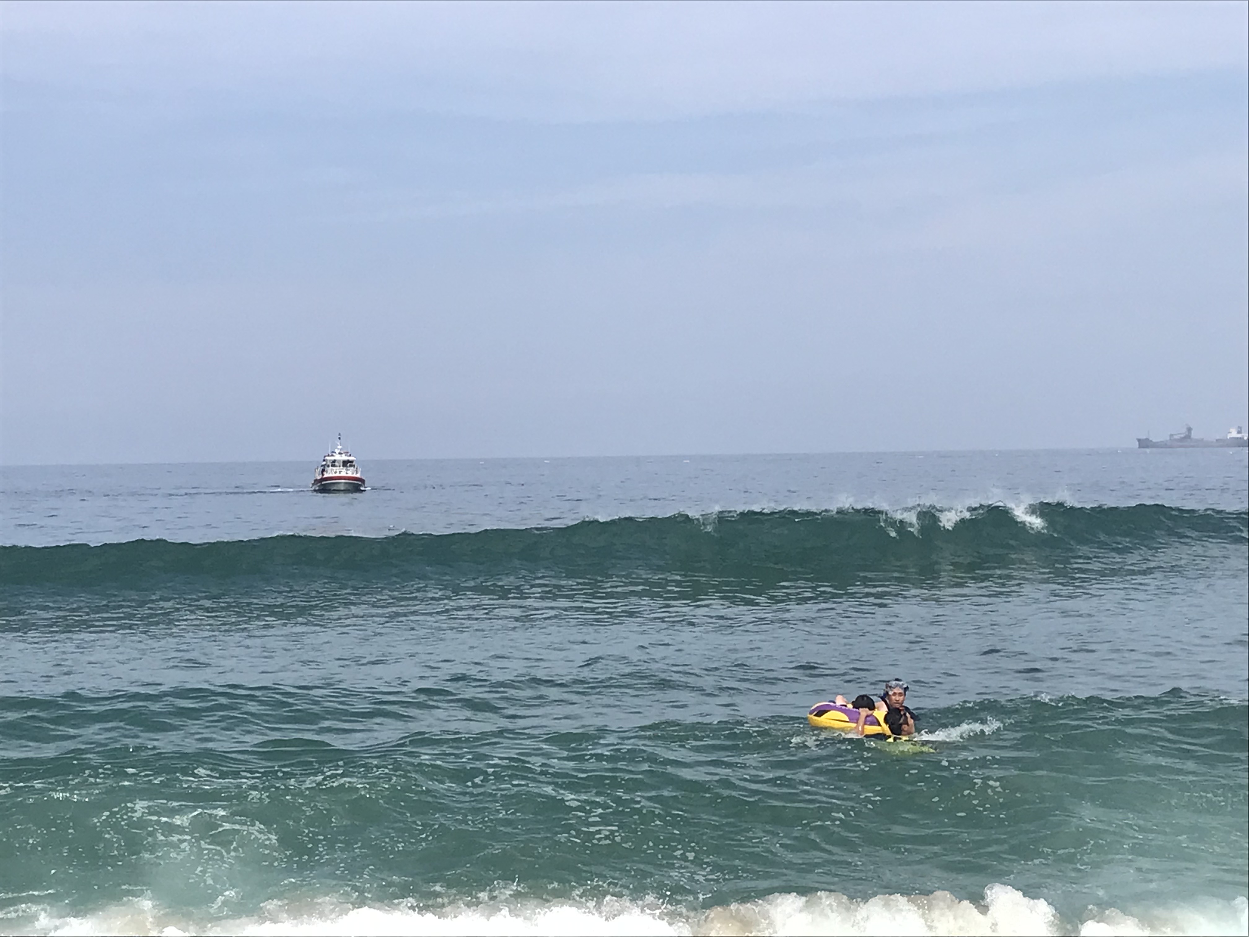 신고를 접수한 동해해경은 묵호파출소 연안구조정과 수상오토바이 등을 현장으로 급파해 5분만에 도착한 연안구조정에서 해변으로부터 약 120m 떨어진 해상에서 튜브를 타고 표류하던 피서객 2명을 발견하고 구조사 2명이 직접 입수하여 구조해 해변에 대기 중이던 119구급대원에게 인계하였다.