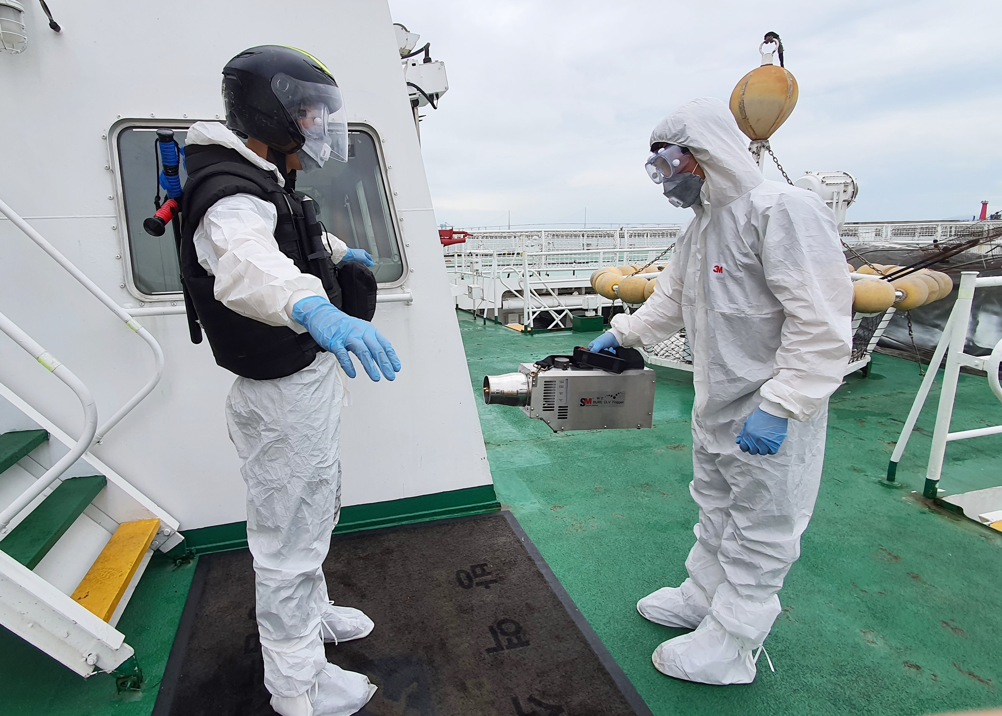 특히, 경찰관들이 외부접촉 후 방역장비를 벗는 과정에서 전파될 수 있는 바이러스를 차단하기 위해 1002함에서 시행중인 방역장비 탈의법*에 대해서는 전 부서에 확대시행 할 것을 지시했다.