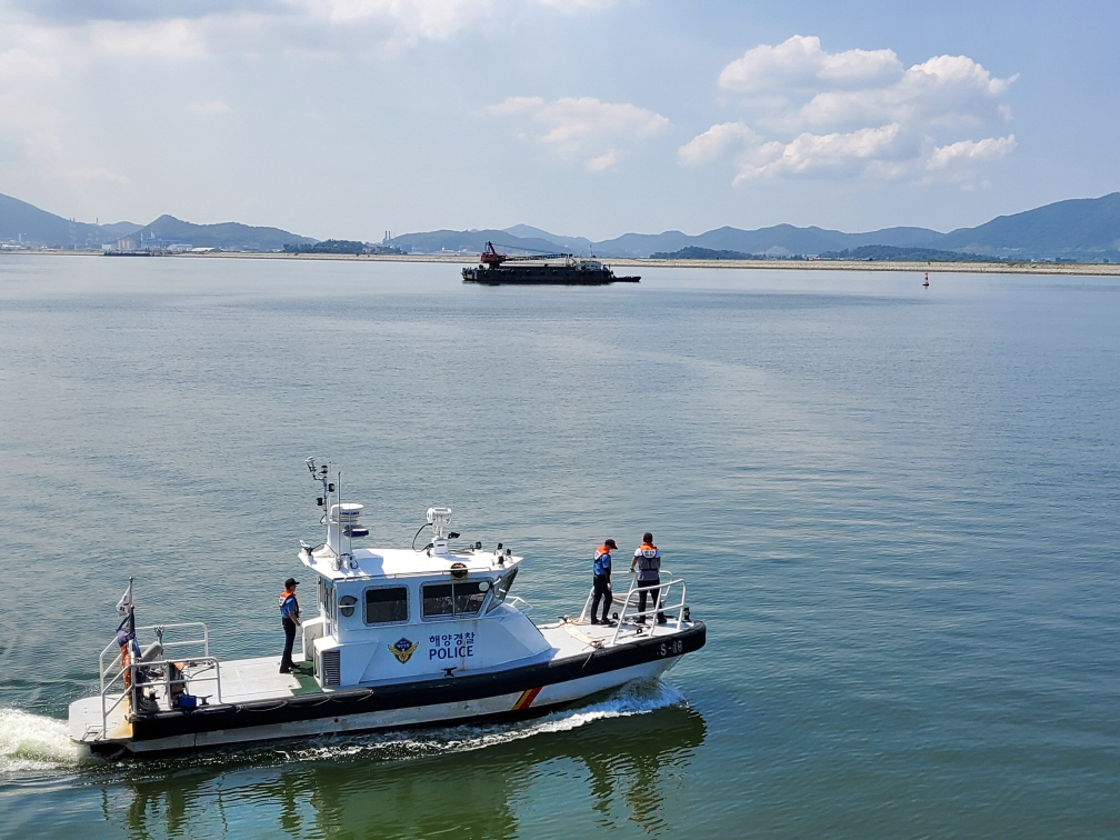 예인선 A호는 오늘 오후 4시께 만조시간 감안 자력 이초 될 것으로 예상하고 인근 경비함정을 배치하여 안전관리 중이다.