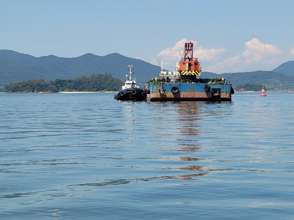 여수해경에 따르면 이날 오전 9시 54분께 여수시 율촌면 송도 동방 약 920m해상에서 99톤급 예인선 A호(승선원 3명)가 공선인 1,100톤급 부선 B호(승선원 3명)를 예인하여 항해 중 저수심 해역 뻘에 얹힌 사고를 여수항만 해상교통관제센터(VTS)에서 발견하여 여수서 상황실에 접수되었다.
