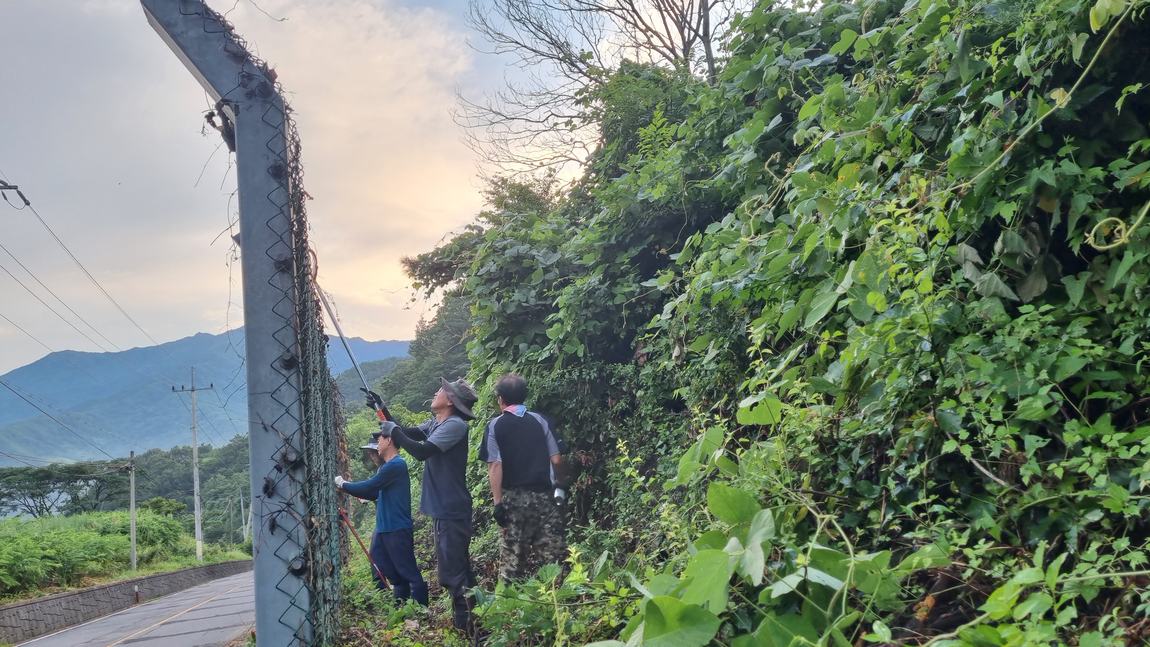 김기복 이장 과 이재용 동사모 회장은 "더운 날씨에도 불구하고 아름다운 마을 만들기" 위해 이른 아침부터 함께 동참해주신 마을주민 과 동사모 회원께 감사 드린다고 하였다.