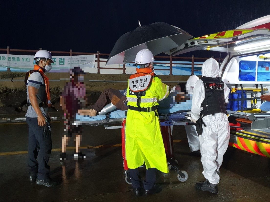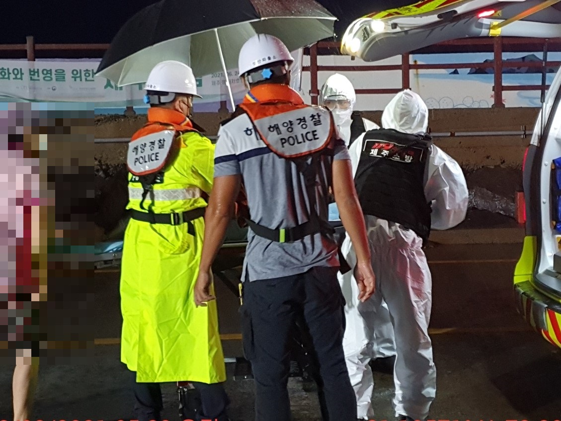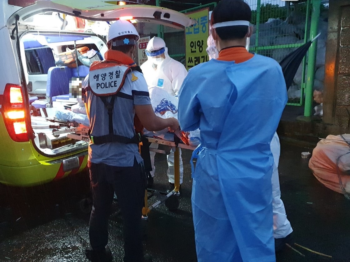 서귀포해경은 성산파출소 연안구조정을 급파해 오전 5시 48분쯤 성산항에 대기 중인 119 구급대에 환자를 인계했다.