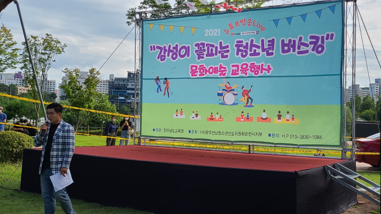 이날 버스킹은 주관: 전라남도교육청 주최: 광주전남 청소년선도위원회 순천시지부, 연출:아침신문(이문석 대표), 해륙뉴스1(유경열 대표), 진행: 가수 용안, 등이 참여하였으며 많은 관광객과 학부모, 학생들이 코로나로 인해 거리 두기를 잘 준수하에 성공리에 진행되었다.