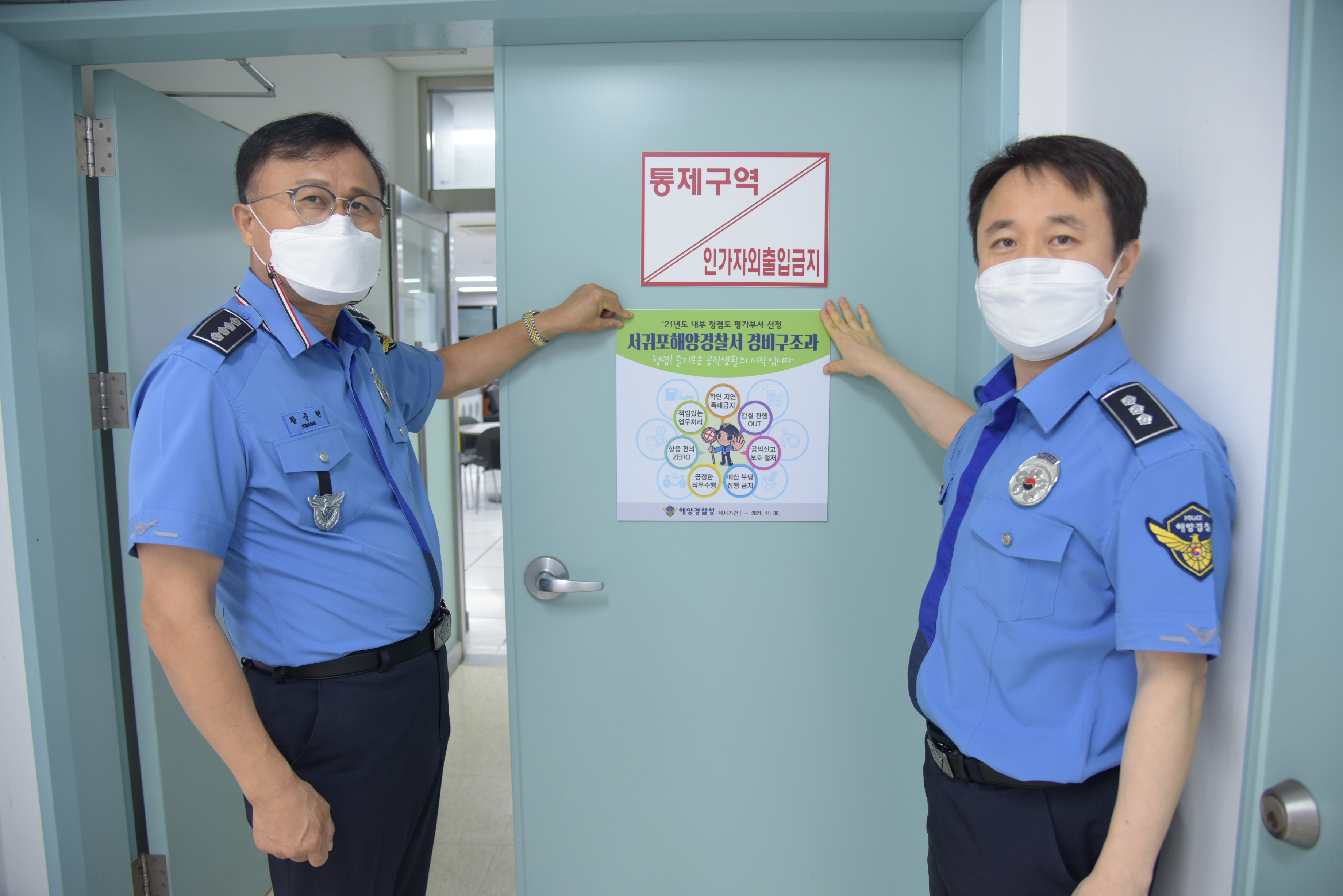 서귀포해양경찰서(서장 황준현)는 23일 소속 직원들의 청렴 인식 제고와 청렴 문화 확산을 위해 「청렴 응원 포스터」 부착 행사를 개최했다고 밝혔다.