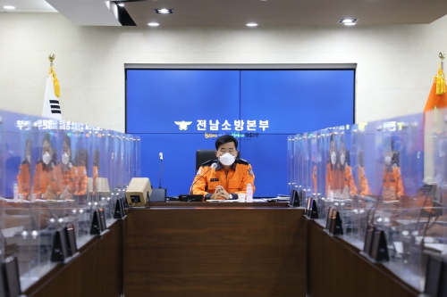 전남소방본부(본부장 마재윤)는 23일 오후 본부 영상전략회의실에서 제12호 태풍 ‘오마이스’ 북상에 따른 긴...